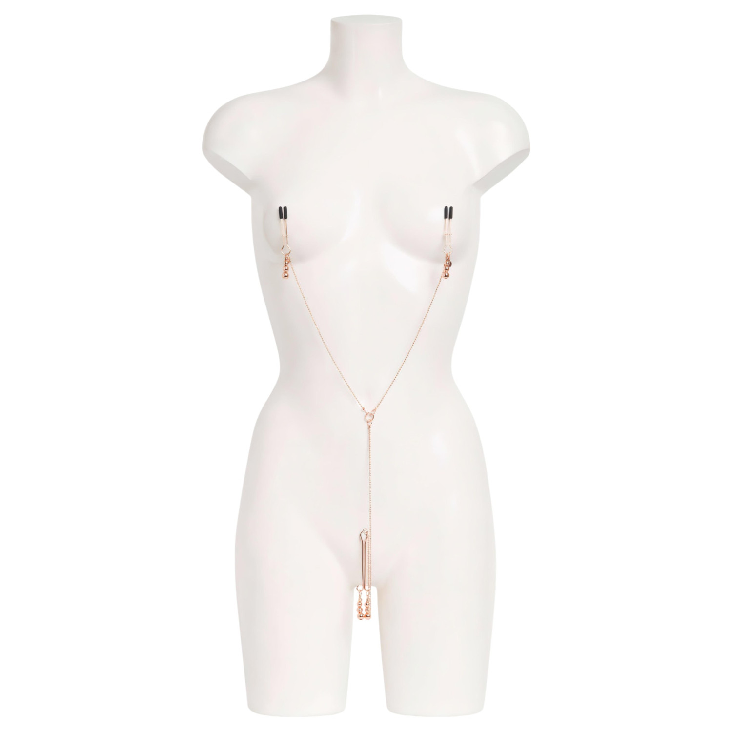 Ez a klitorisz- és mellbimbódísz lánccal összekötve fájdalommentes, csupán egy kis szorító érzéssel képes fokozni az élvezetet.