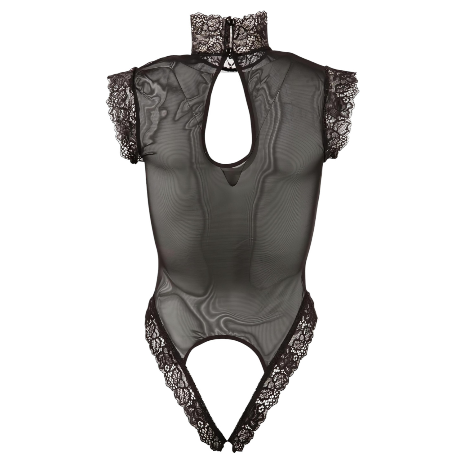 • 1 db fekete, átlátszó body állógallérral és csipkés részletekkel