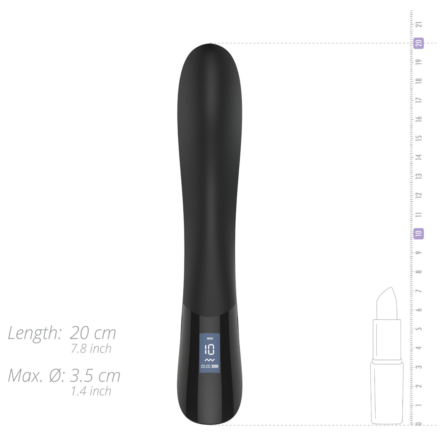 • Digitális kijelzővel - láthatod, hogy épp melyik funkciót használod, meggyőződhetsz az akkumulátor töltöttségi szintjéről, de azt is méri, mennyi ideje használod a vibrátort