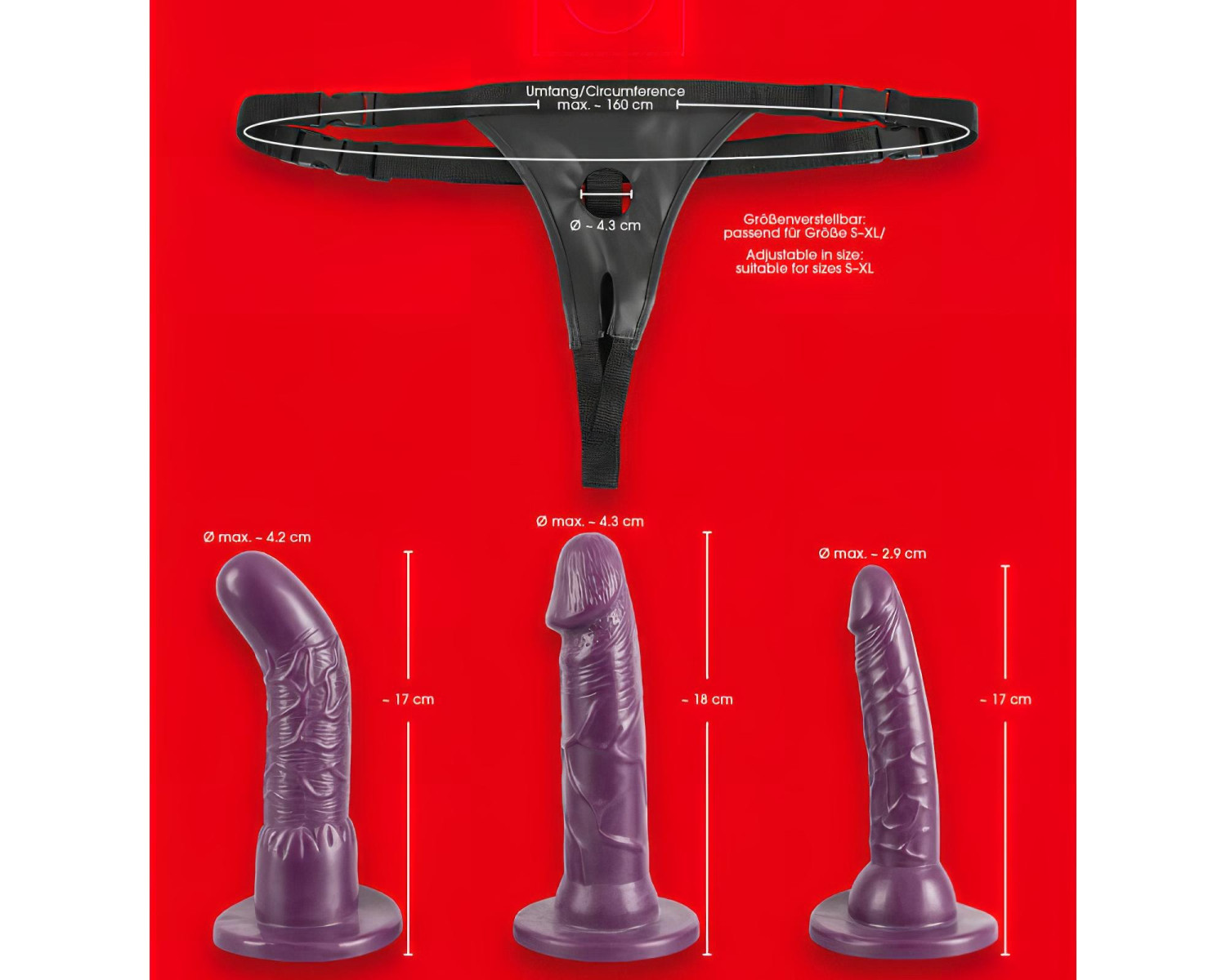 • Három különböző típusú dildó (normál, anál, G-pont) a változatos élményekért.