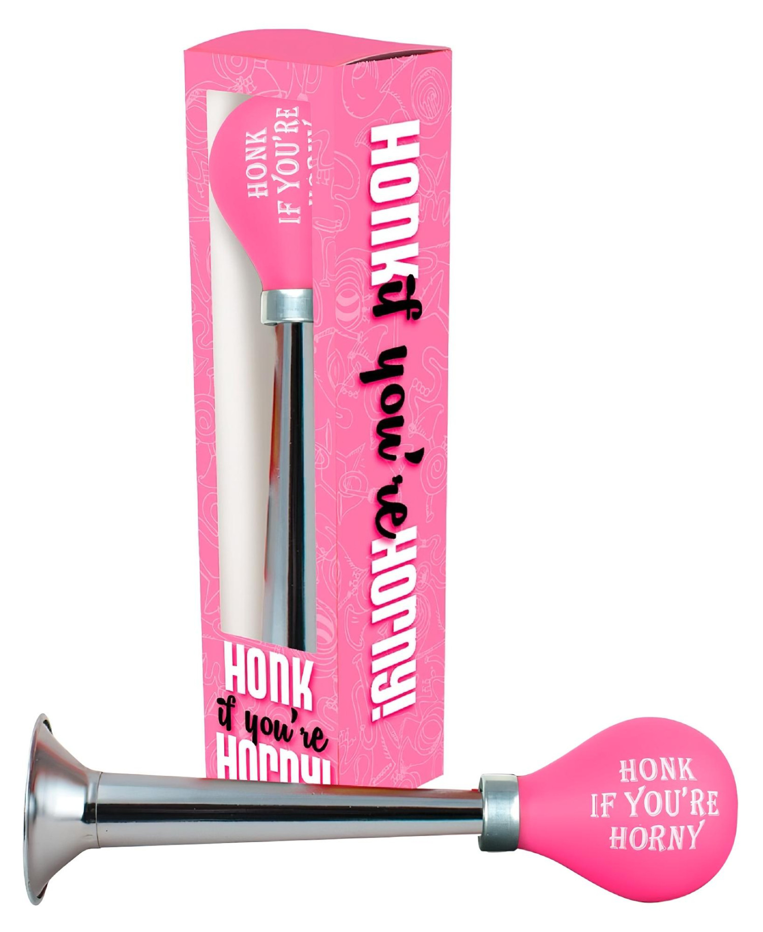 • 1 db "Honk if you're horny" felirattal ellátott kürt.