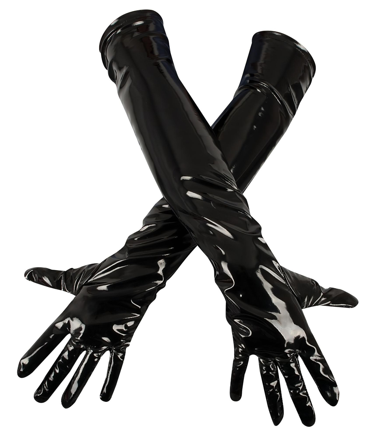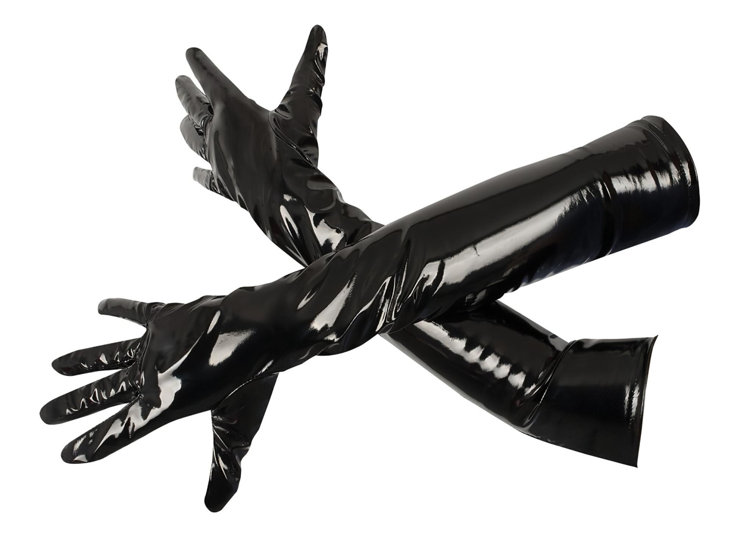 Fényes lakkból készülő, csillogó kesztyű, mely vad partyk kiegészítőjeként, vagy domina jelmezhez is tökéletes választás!