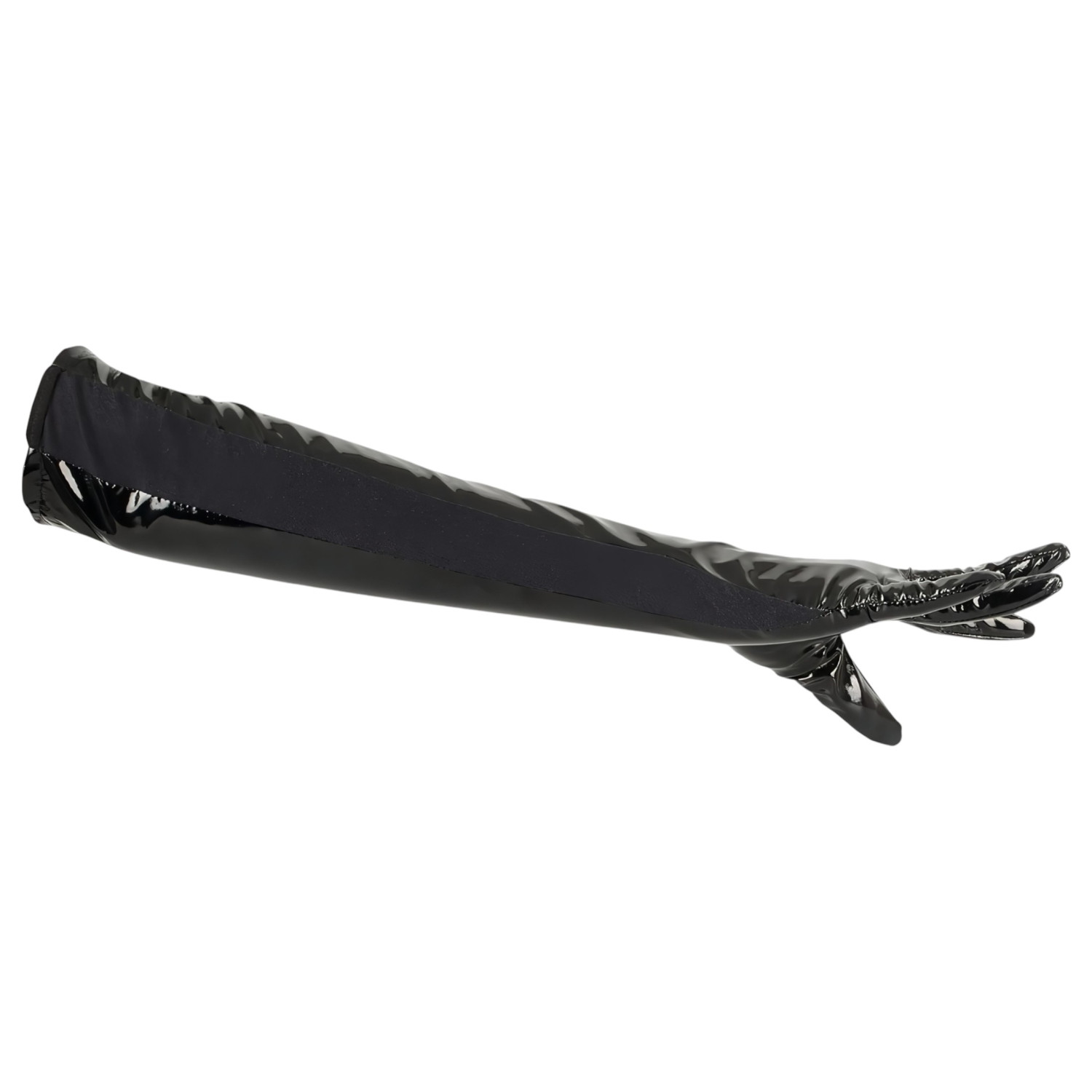 Fényes lakkból készülő, csillogó kesztyű, mely vad partyk kiegészítőjeként, vagy domina jelmezhez is tökéletes választás!