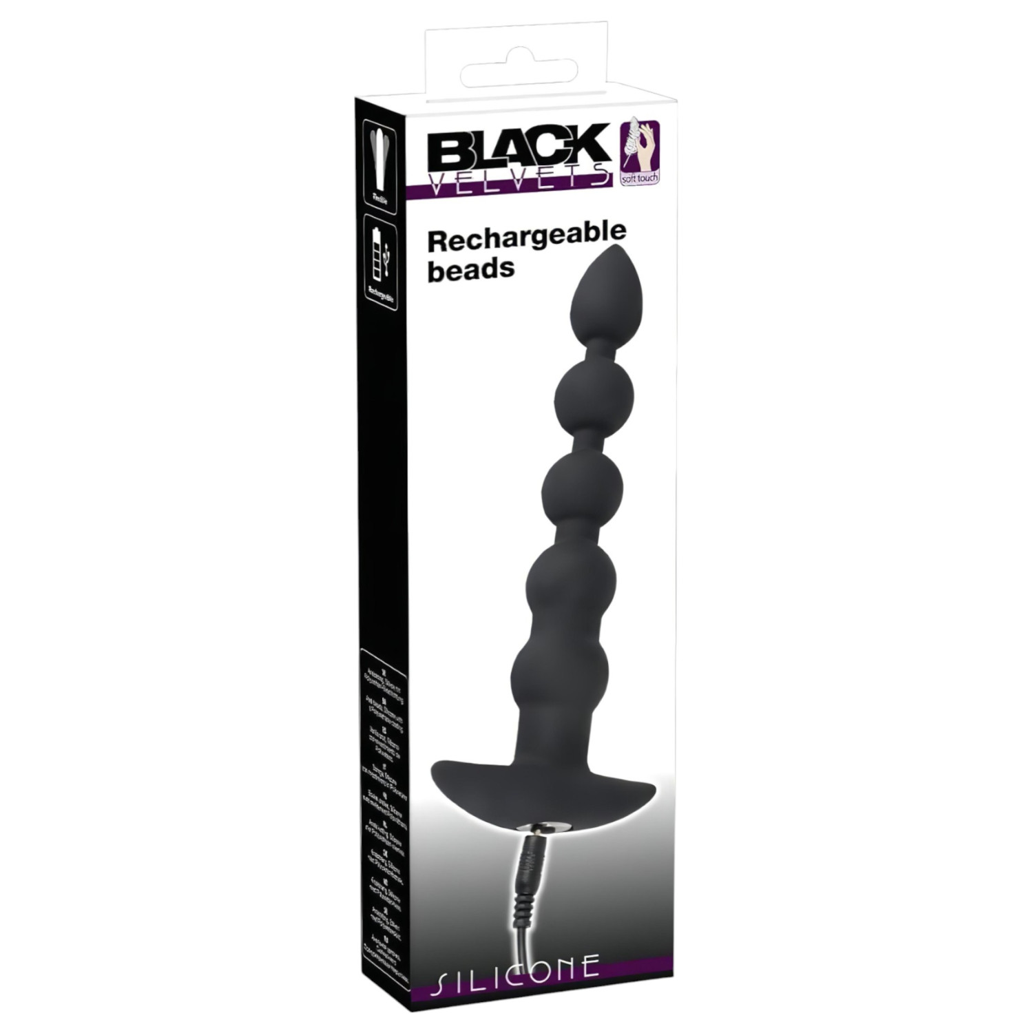 Black Velvets - akkus 5 gyöngyös anál vibrátor (fekete)