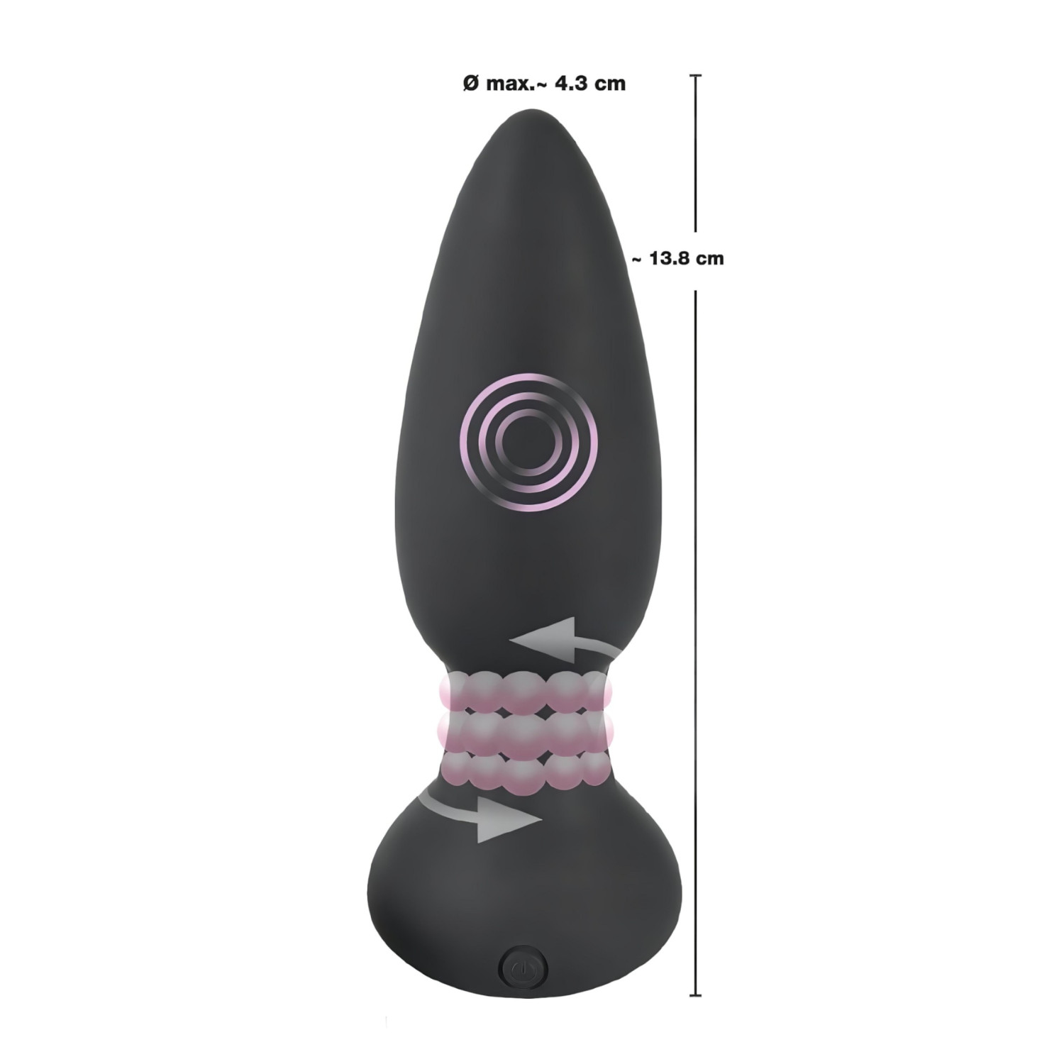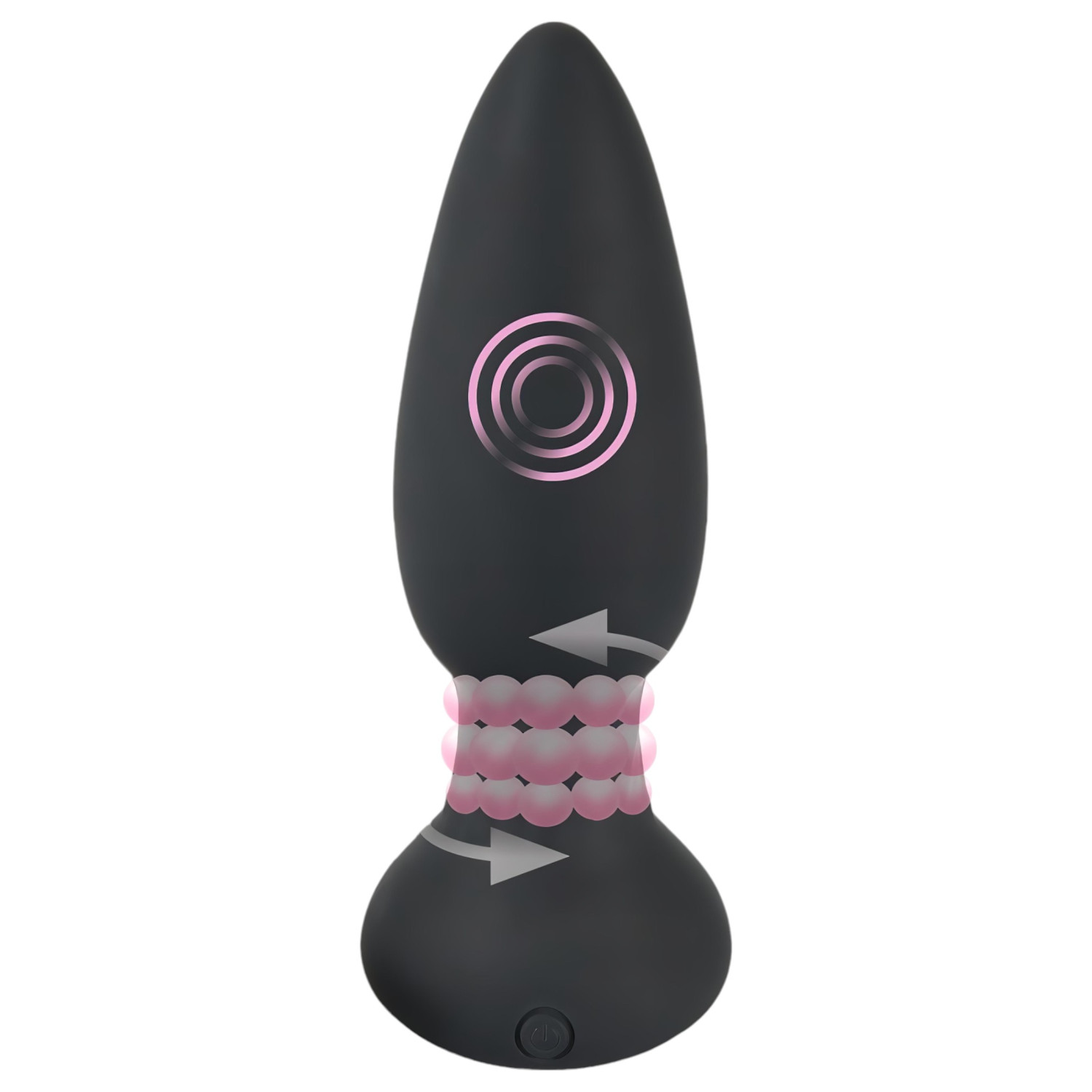 Vezeték nélküli távvezérlős análkúp, beépített forgó gyöngyökkel, mely a popsinyalás érzését kelti! A legmagasabb szintű idegvégződéseket borzongatja meg!