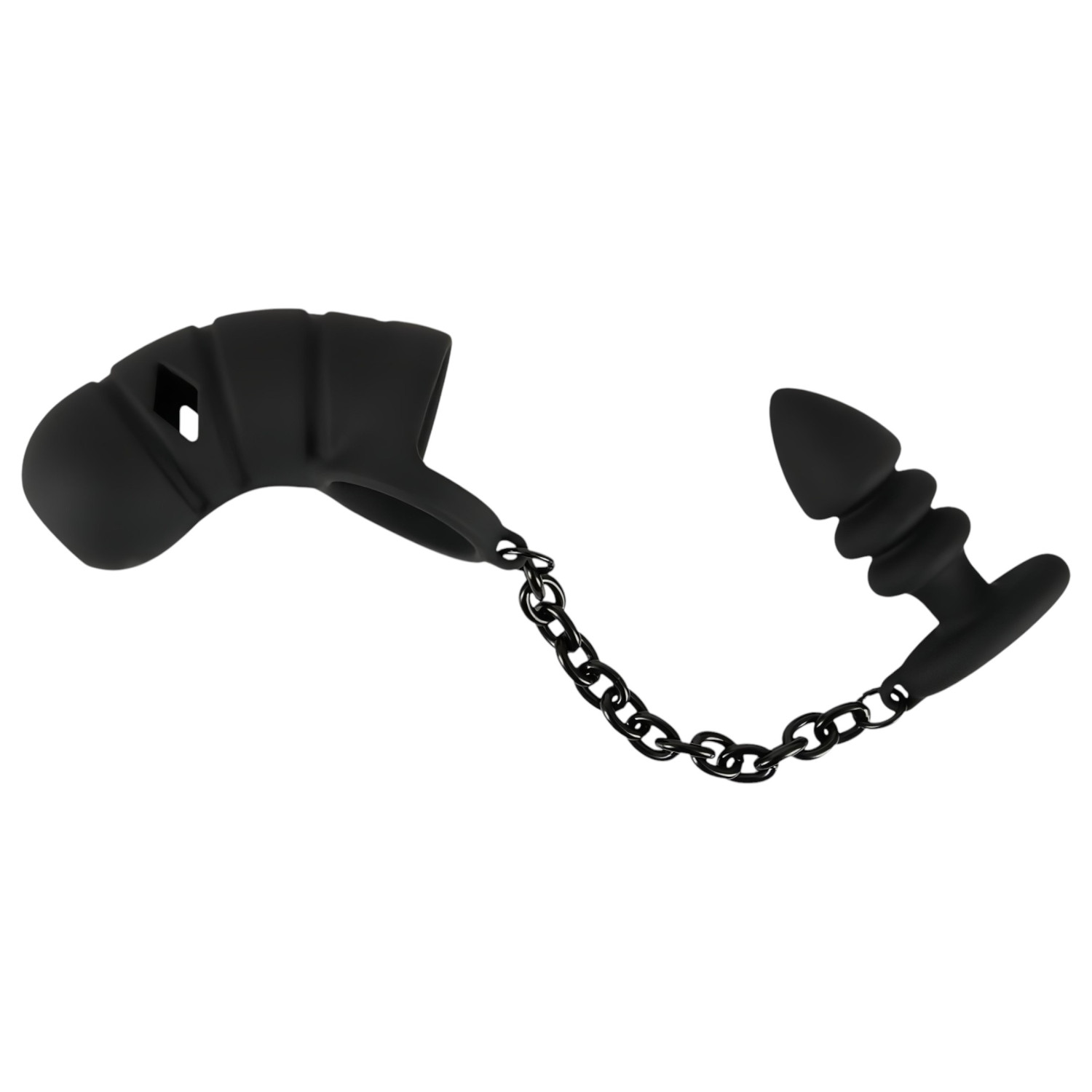 Black Velvets - szilikon pénisz ketrec anál pluggal (fekete)