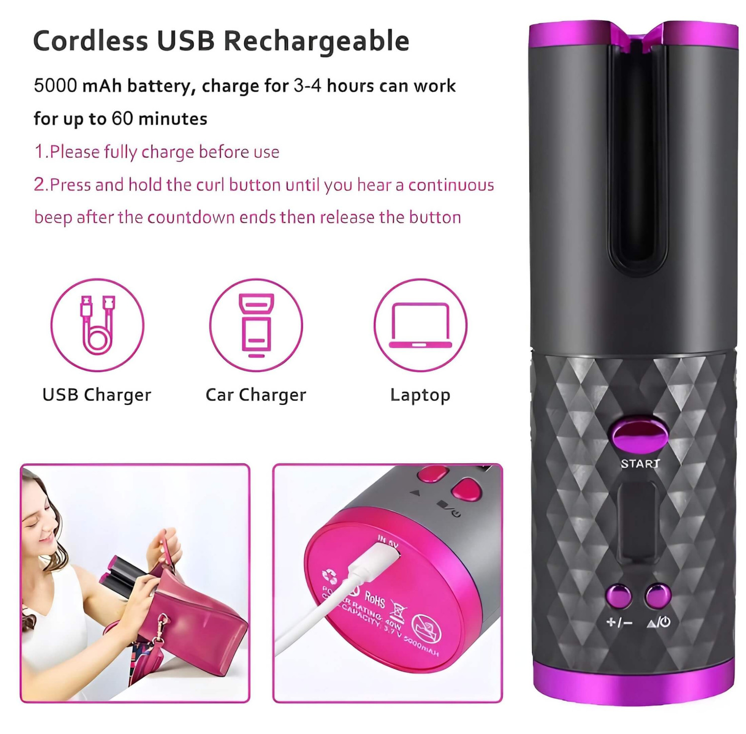 • Könnyen kezelhető - kapcsold be, majd tartsd lenyomva a START gombot és a hajadat már göndöríti is bármilyen erőfeszítés nélkül