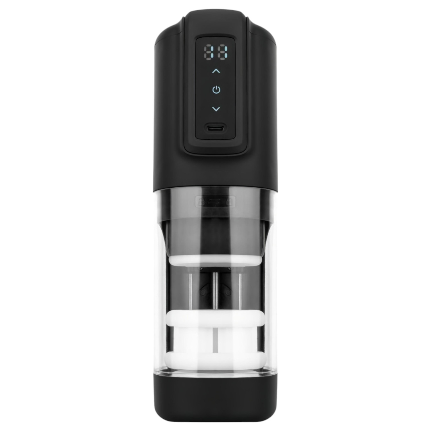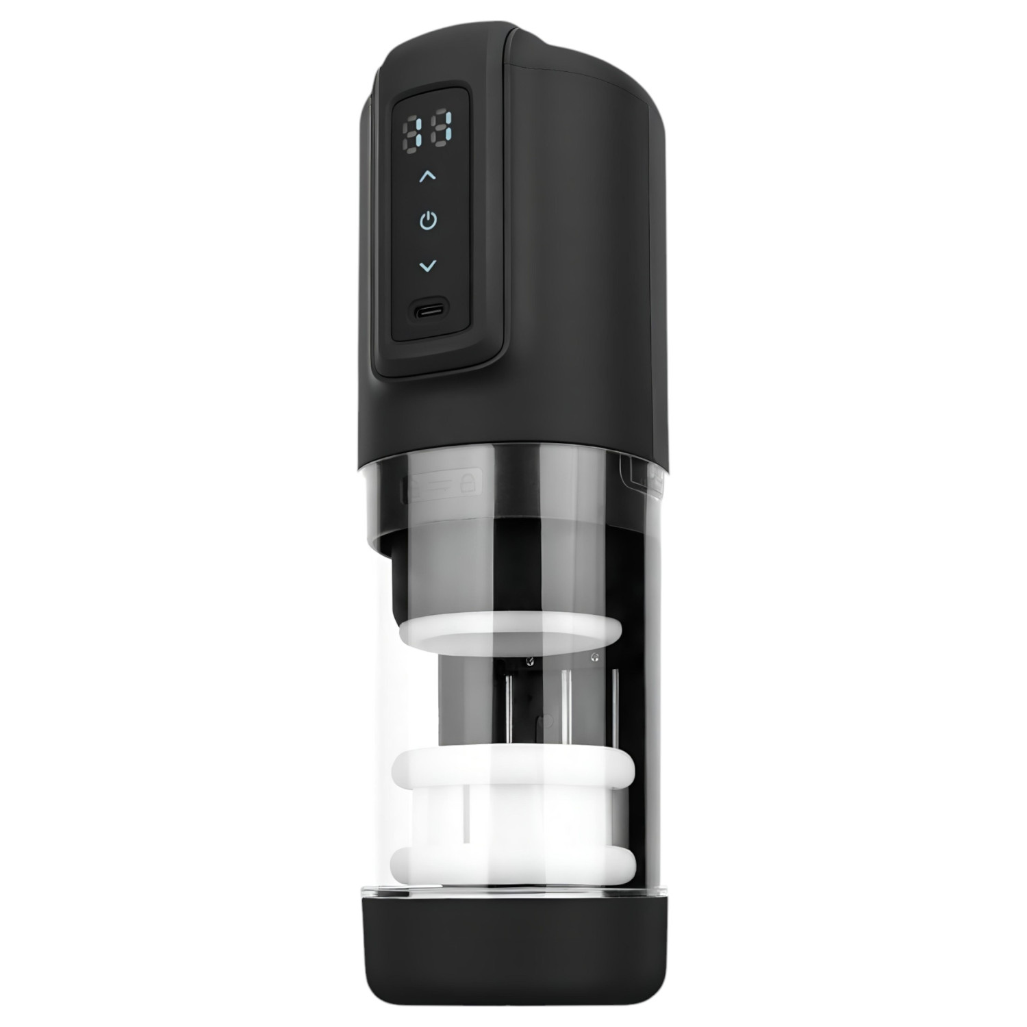 A maszturbátoron található gombok segítségével választhatod ki a kívánt módokat. A power gombot hosszan lenyomva bekapcsolhatod, majd a további gombokkal váltogathatod a rezgési és tolási funkciókat. A digitális kijelző tájékoztat az aktuális beállításokról és az akkumulátor töltöttségi szintjéről.