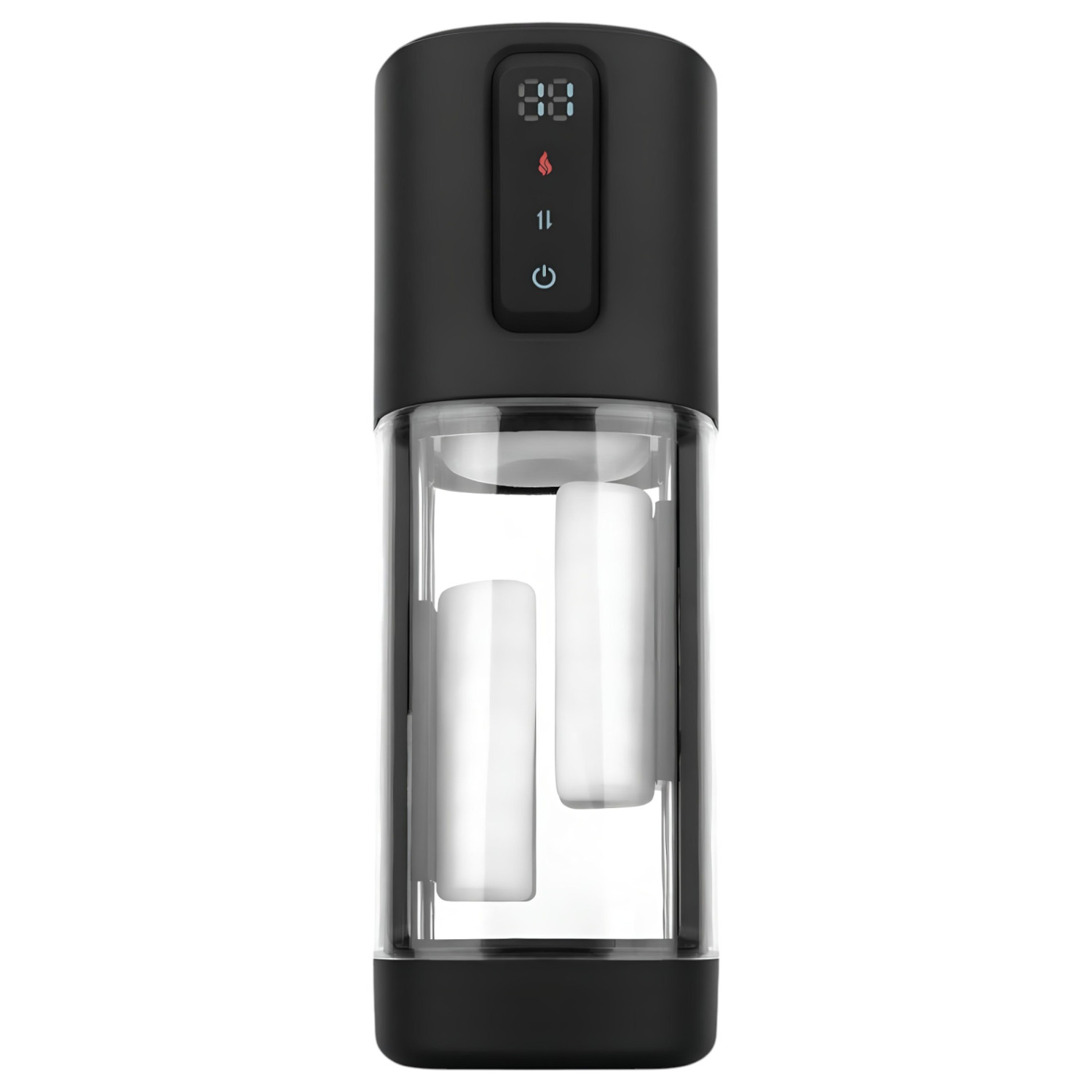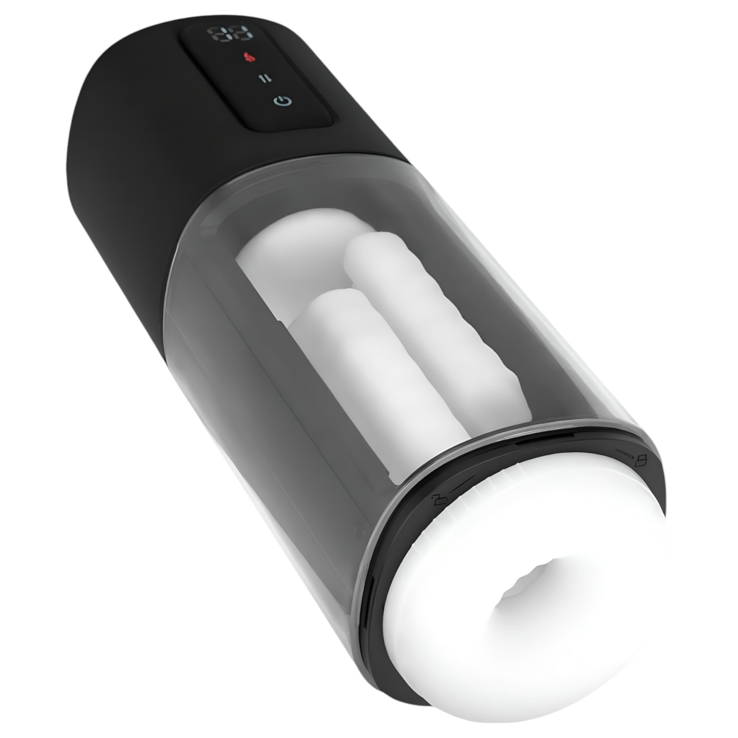 A maszturbátoron található gombok segítségével választhatod ki a beállításokat. A power gomb hosszan lenyomva kapcsolja be a készüléket, további gombokkal válthatsz a különböző funkciók között. A digitális kijelző segít a beállítások és az akkumulátor töltöttségi szintjének követésében.