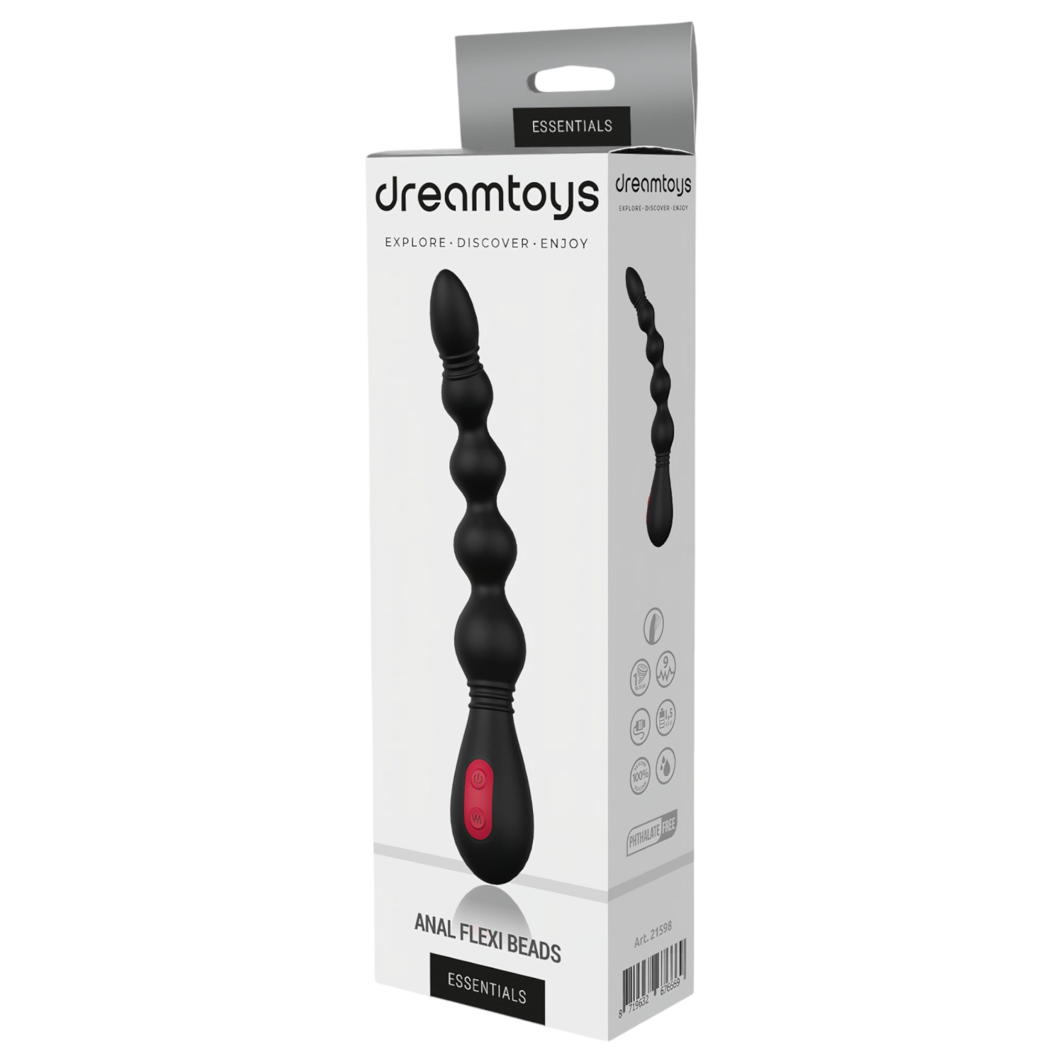Gyöngyökből álló, vibrációs anál kényeztető, mely ki-be mozgatáskor gyengéd masszázzsal kényeztet, a rezgő motort elindítva pedig extra bizsergető gyönyörre kapcsol!