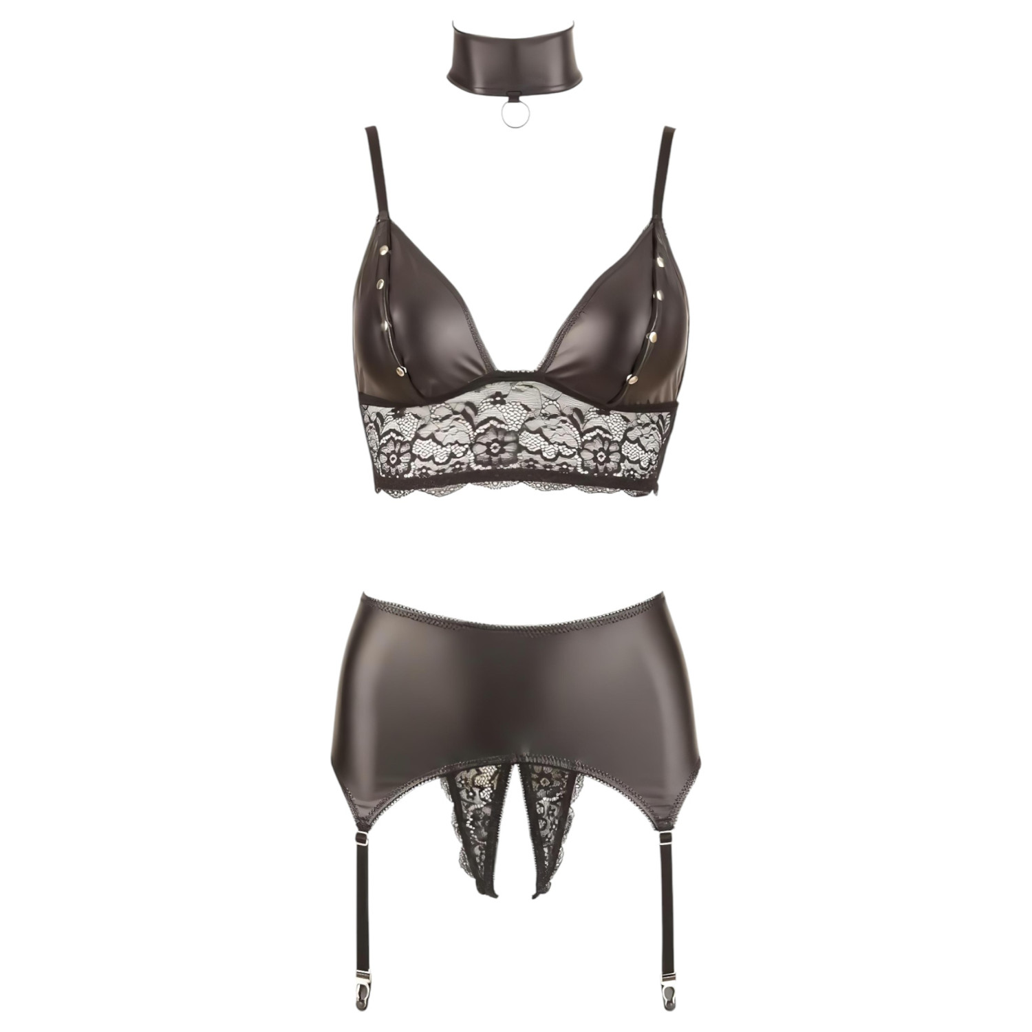 Cottelli Bondage - csipkés fényes fehérnemű szett (4 részes)