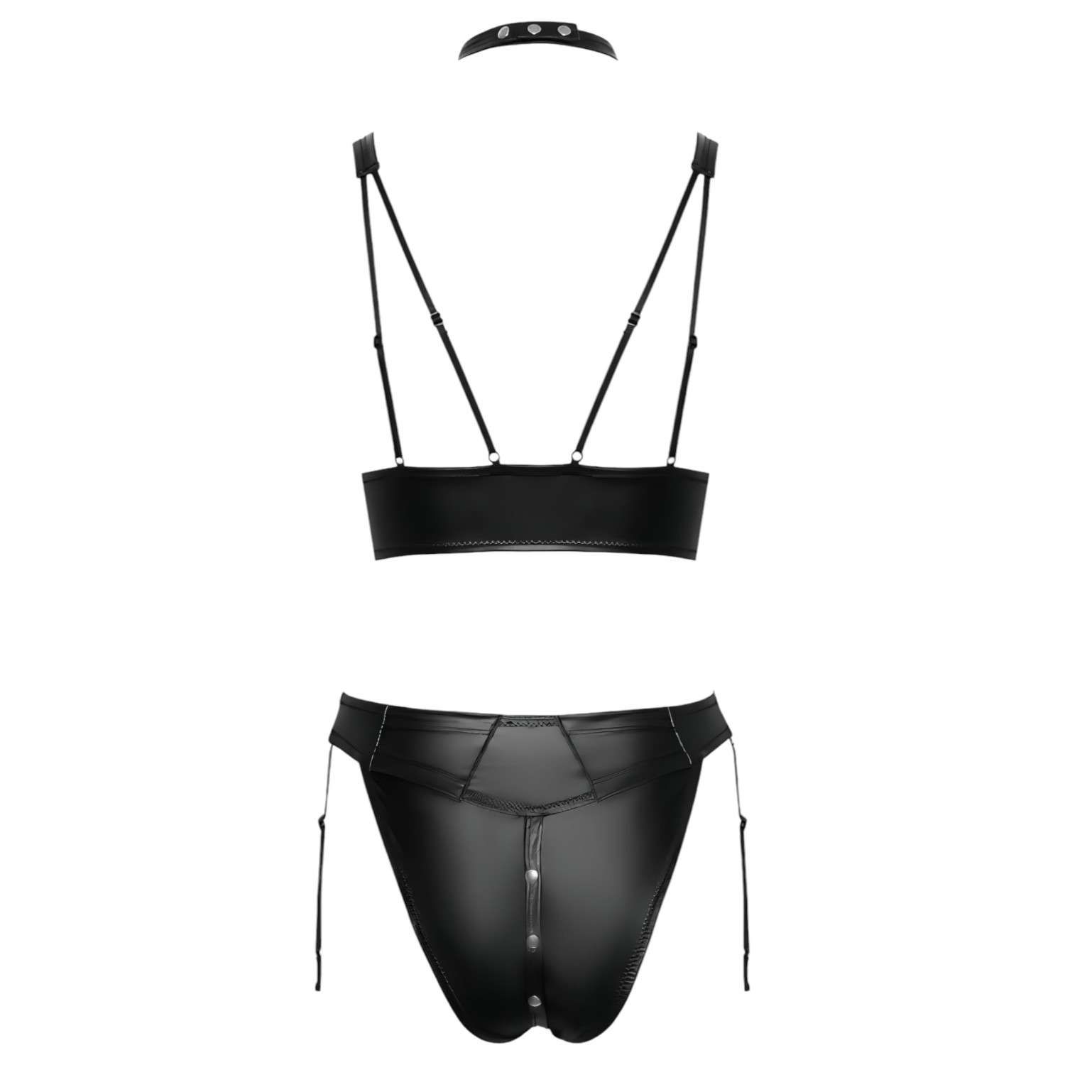 Matt fekete színben kapható két részes fehérnemű szett, mely egy csapásra dominává varázsolhat téged!