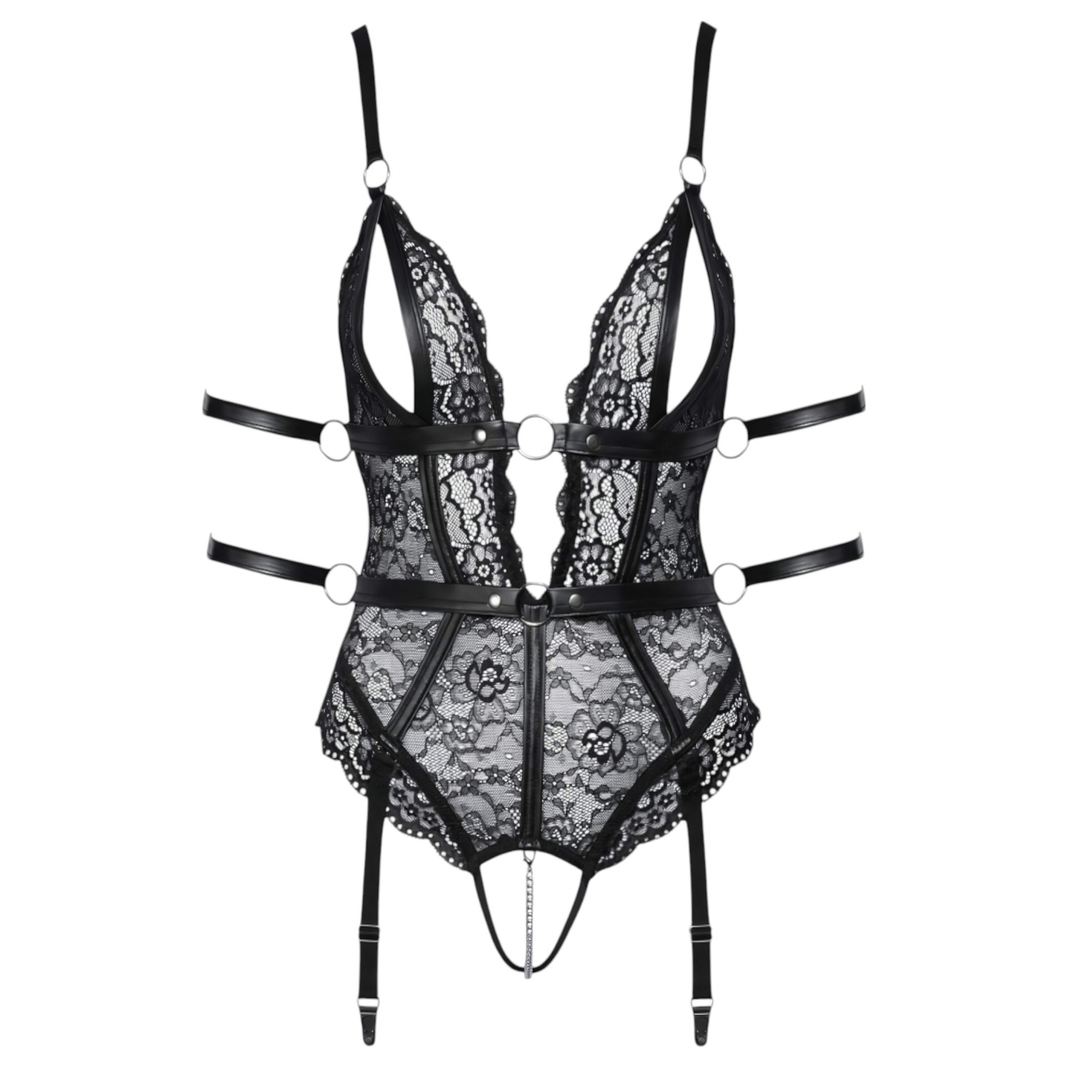 Nyitott, kikötözős body harisnyatartó pántokkal!