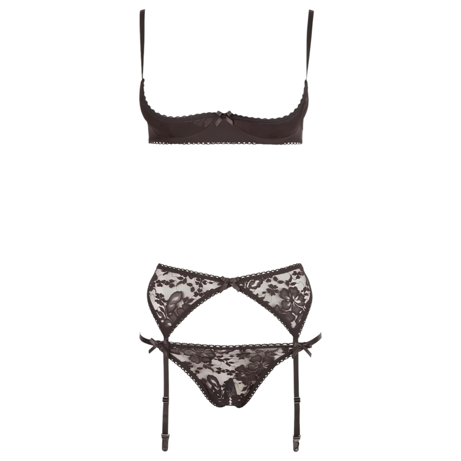 Klasszikus, szexi fehérnemű szett, puha, áttetsző csipkével díszítve.