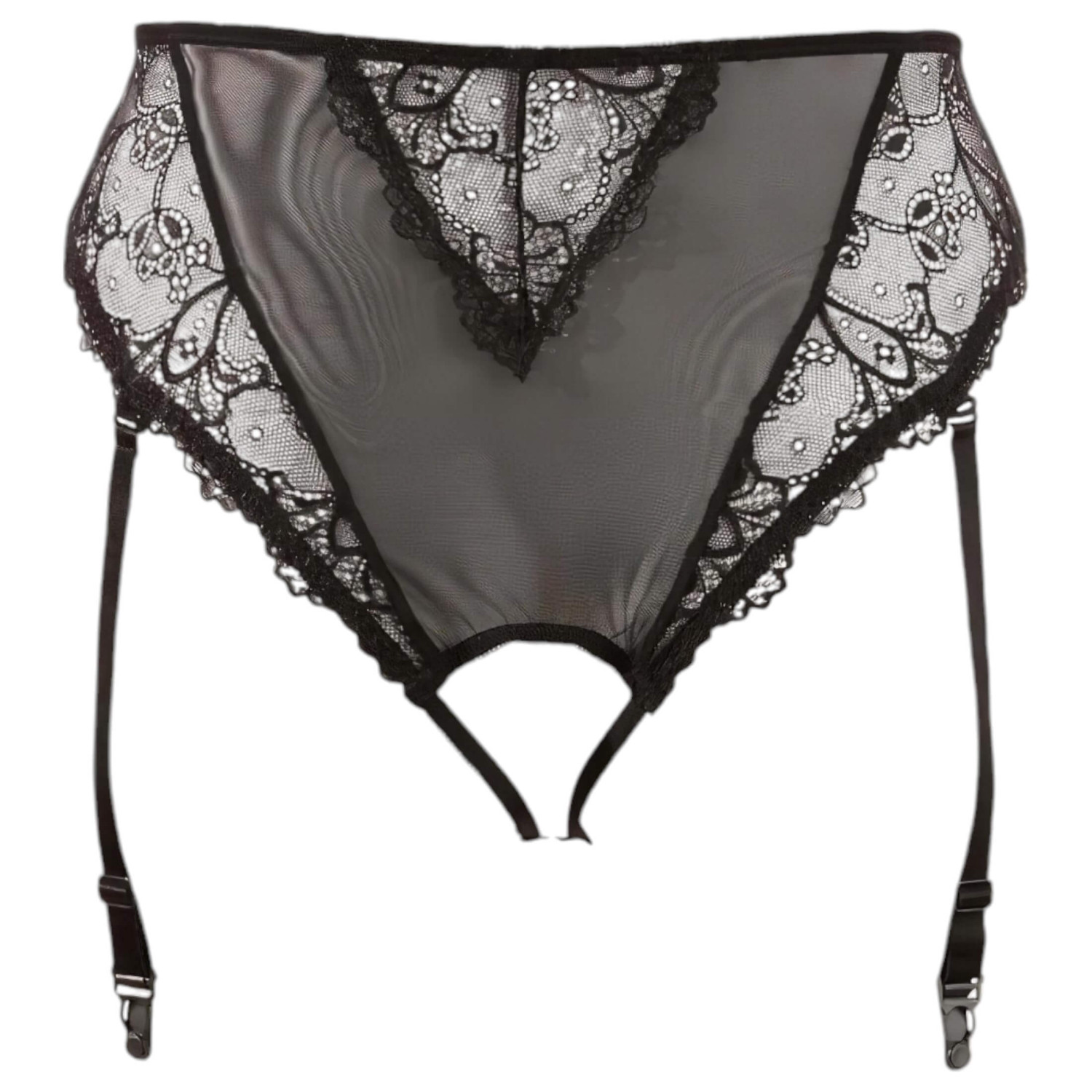 Cottelli Plus Size - csipke harisnyatartós bugyi (fekete)