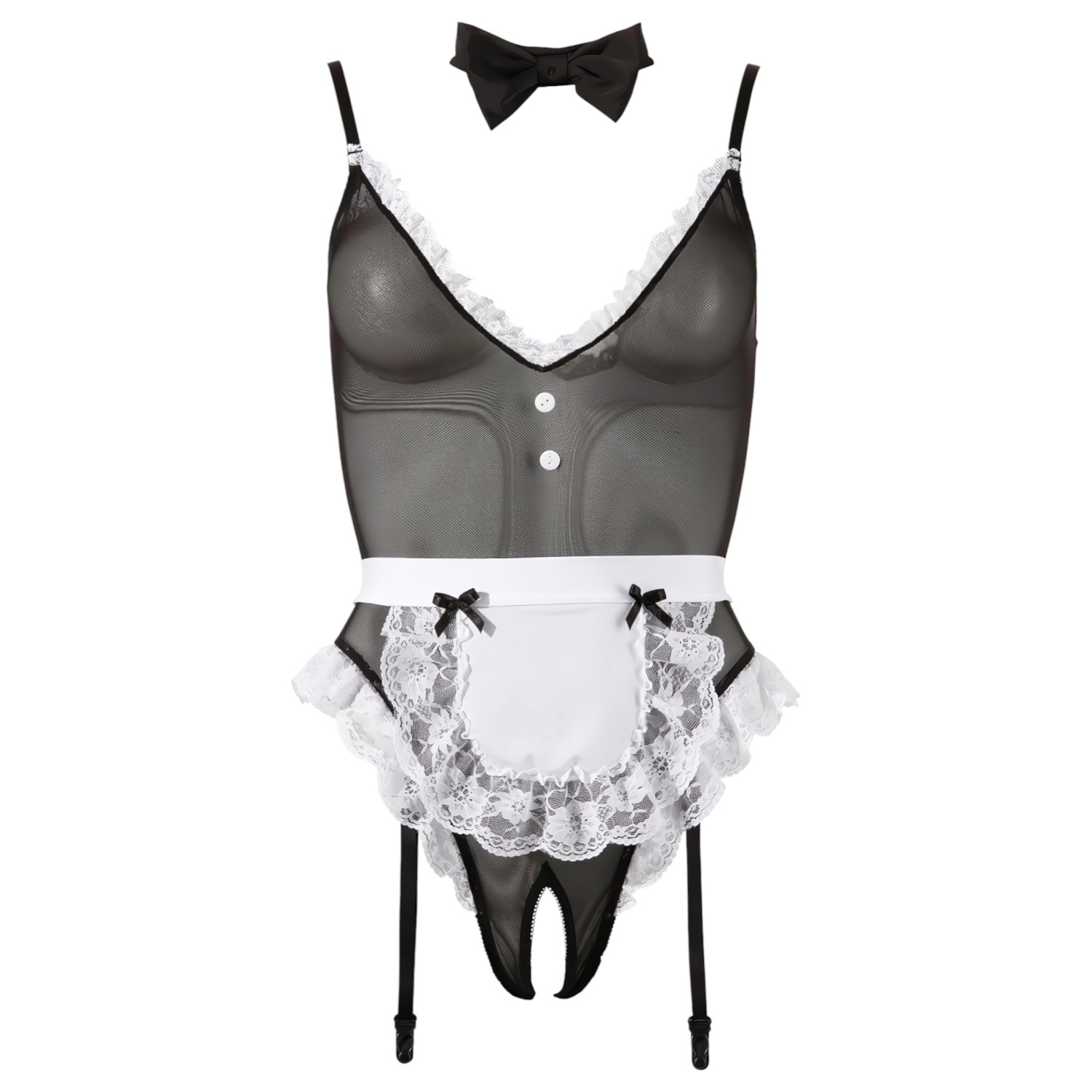 • 1 darab fekete, áttetsző szobalány body
