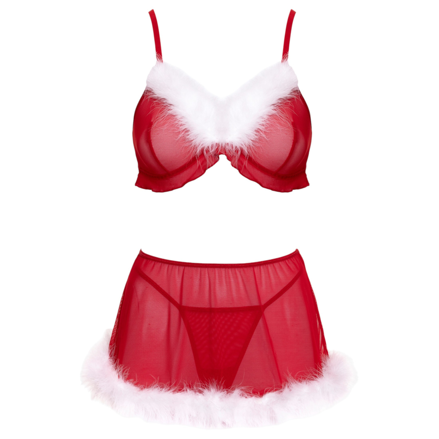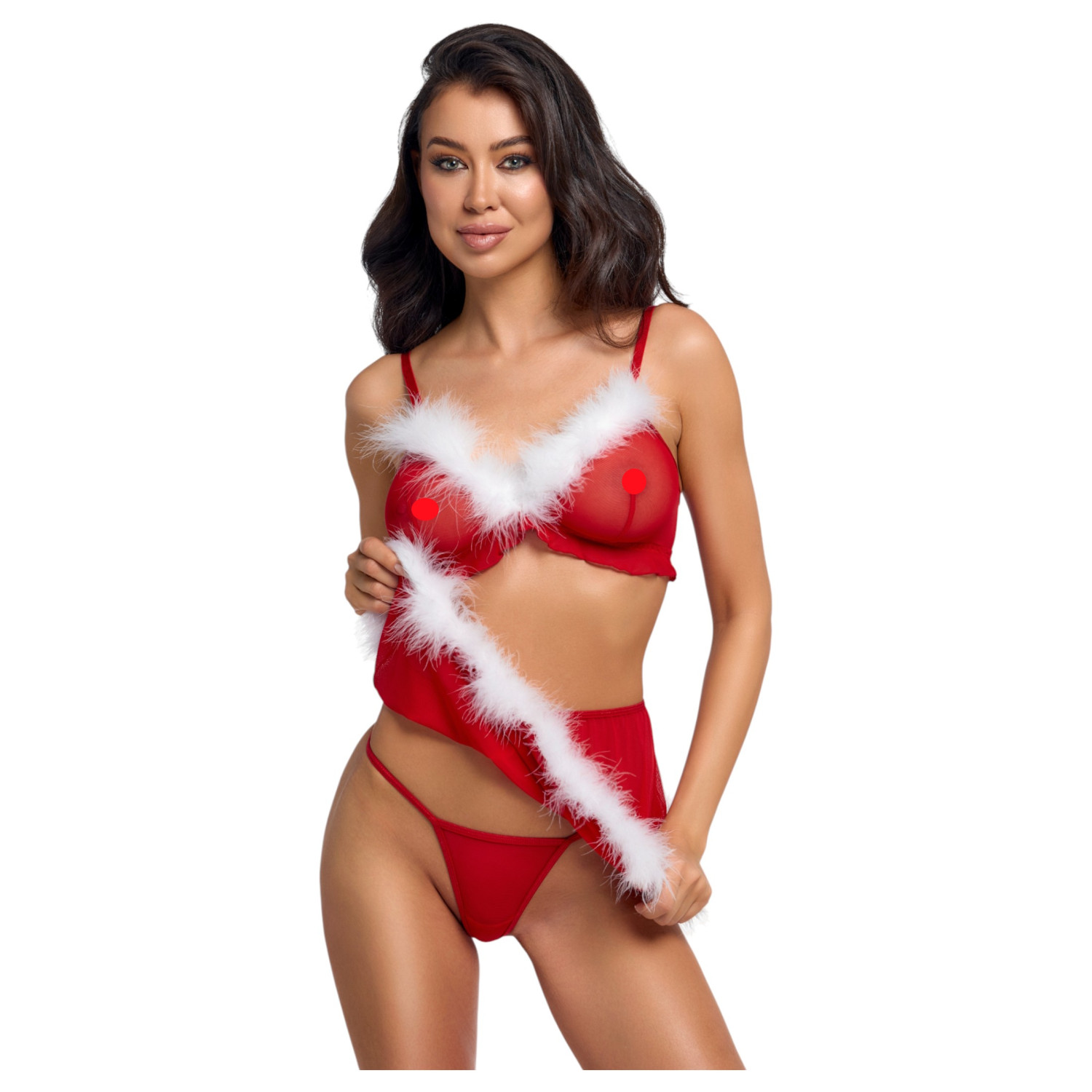 A Cottelli Lingerie 3 részes karácsonyi fehérnemű szett tolldíszítéssel ünnepi és érzéki választás, amely a csábítást és az eleganciát tökéletesen ötvözi.