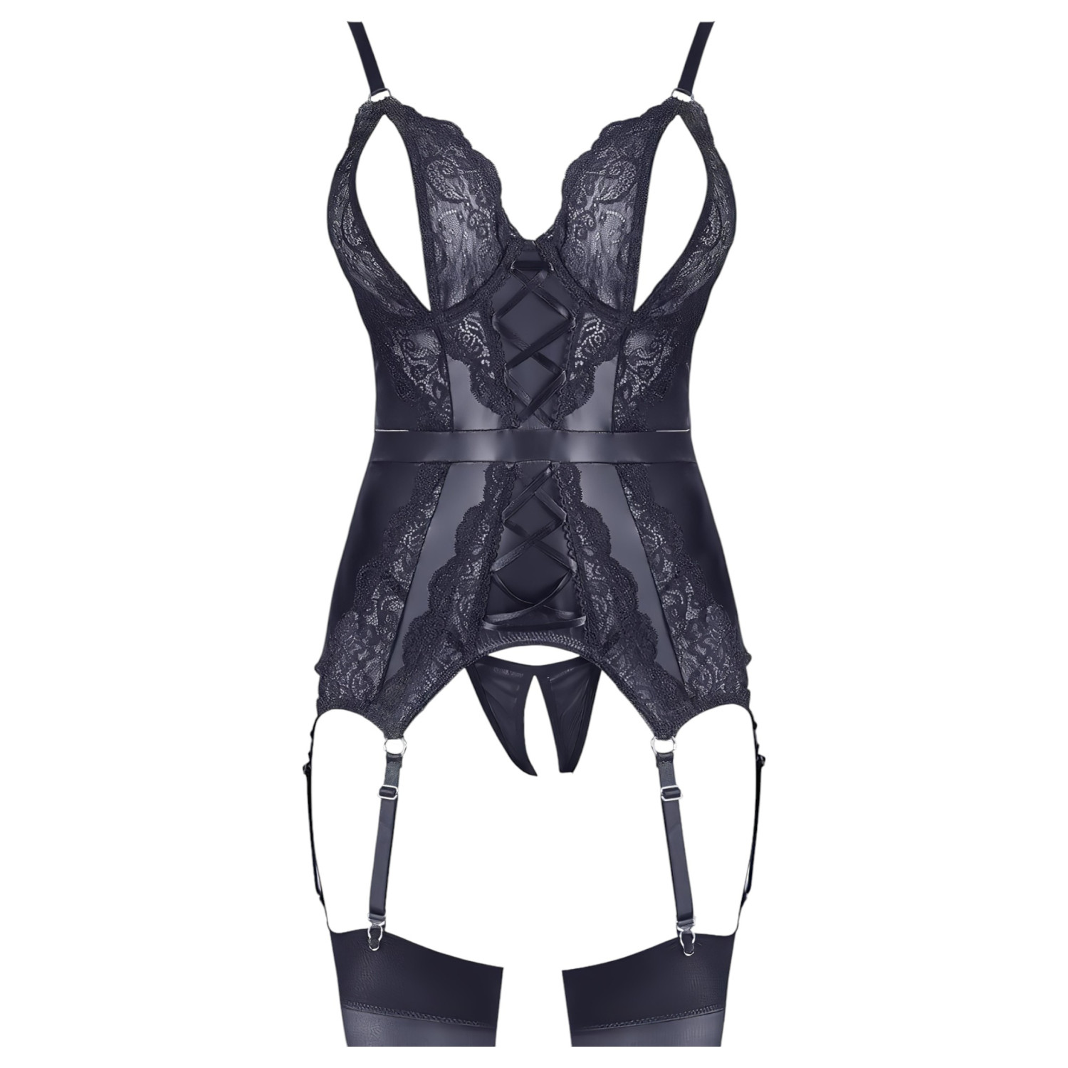 Cottelli - csipkés nyitott felső és tanga (fekete)