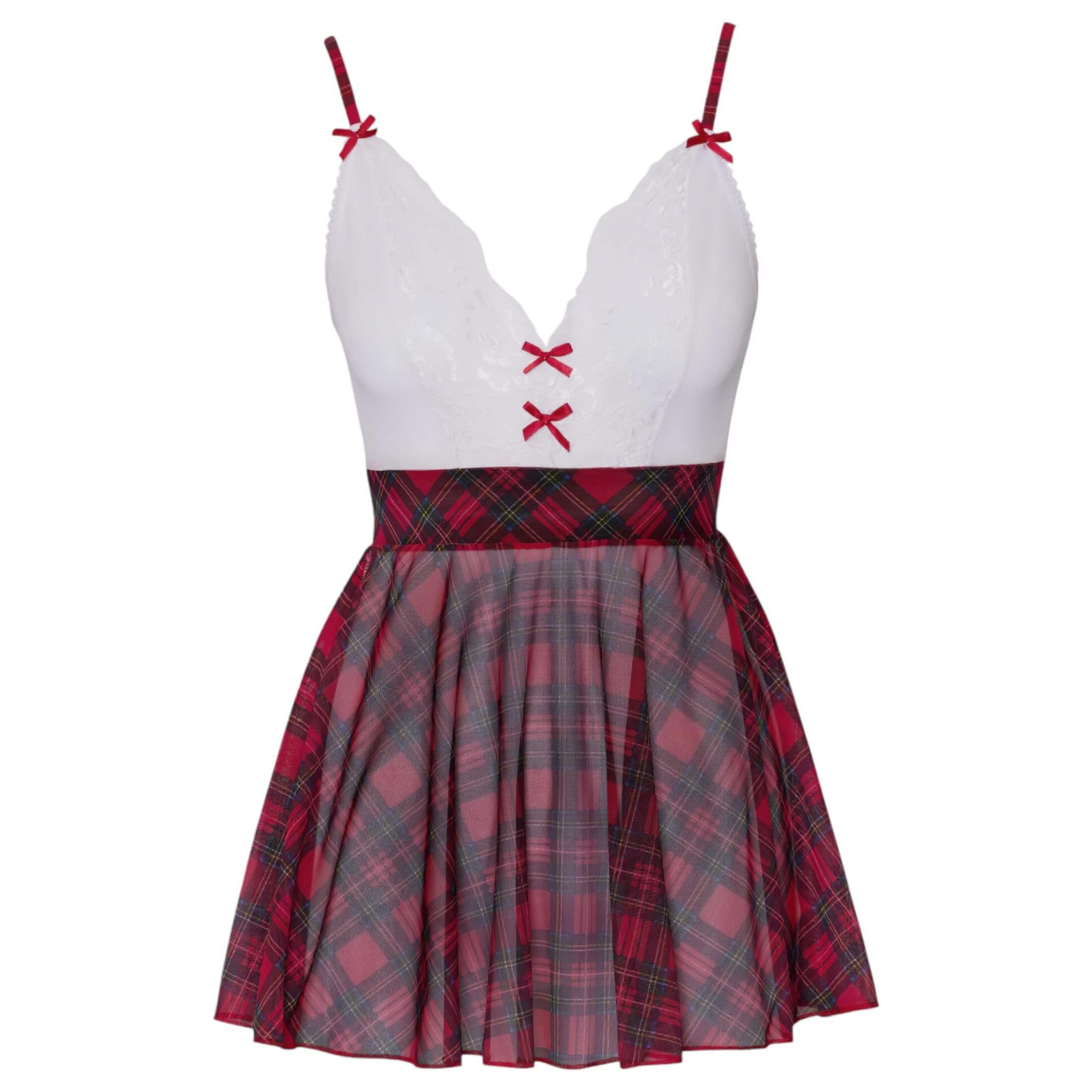 Dögös, enyhén áttetsző anyagból készülő diáklány ruha, mely erotikus szerepjátékokhoz is tökéletes választás, ha egy kis izgalomra vágytok!