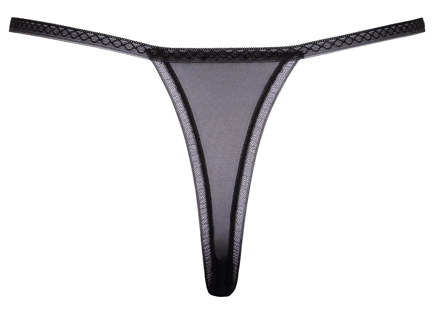• 1 darab áttetsző necc tanga liliom hímzéssel és levehető gyöngyös láncokkal.