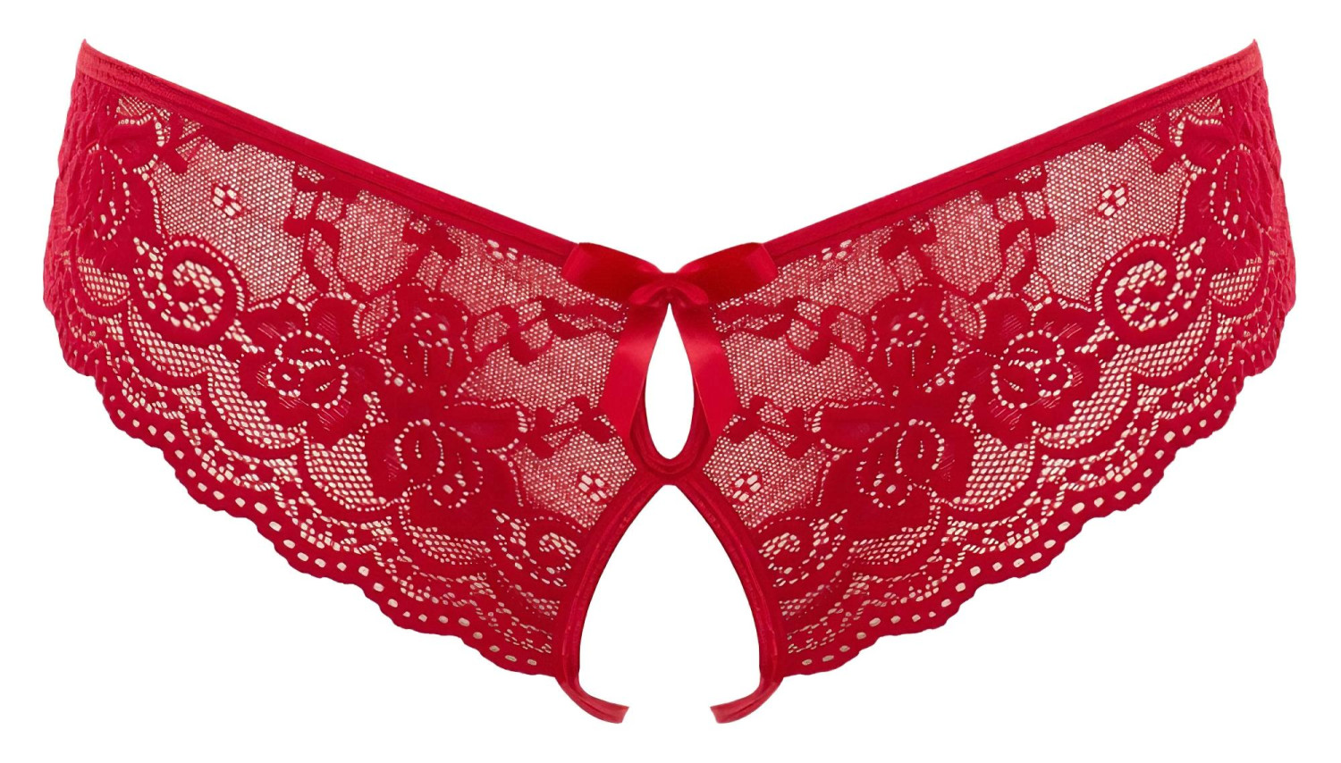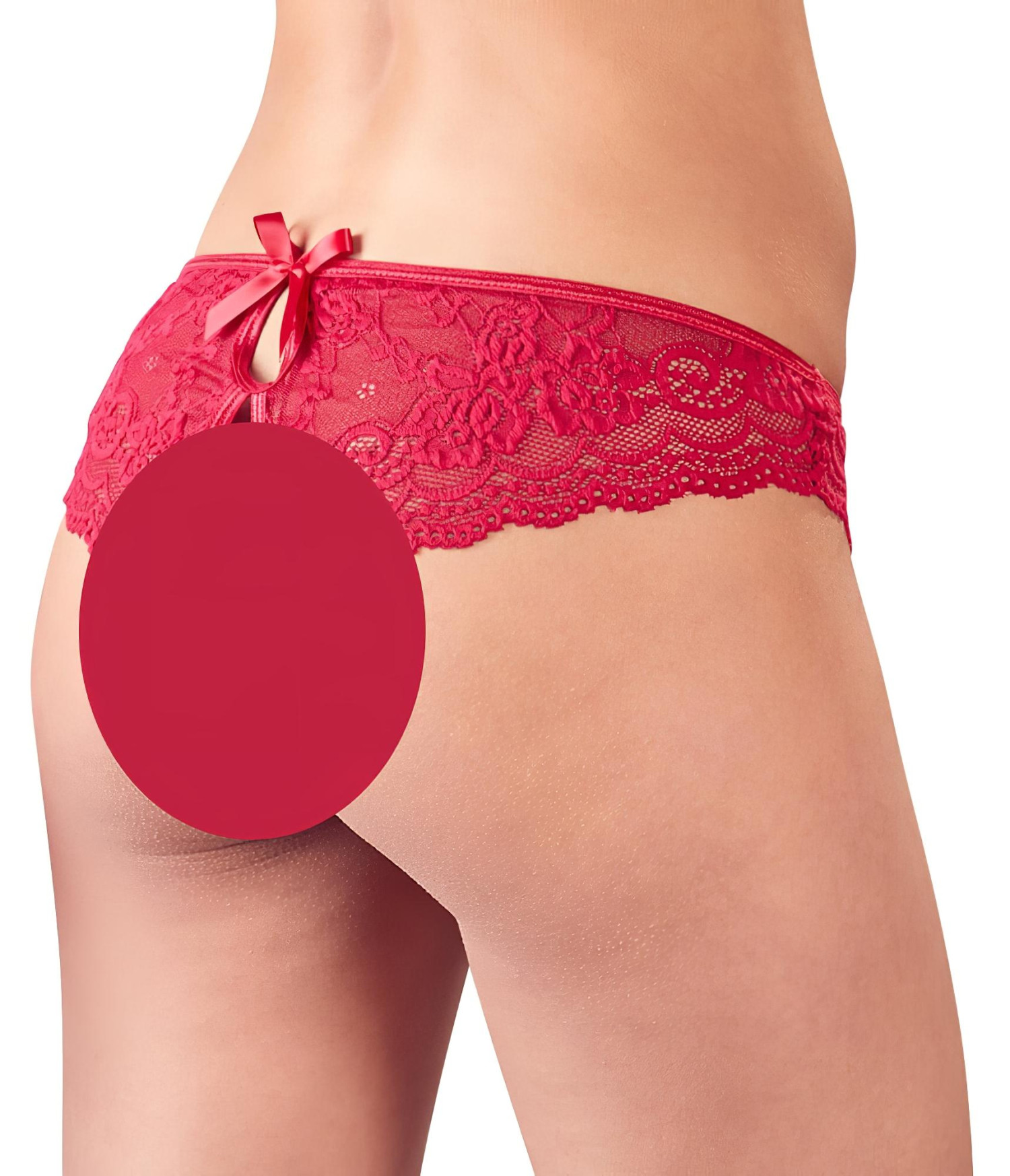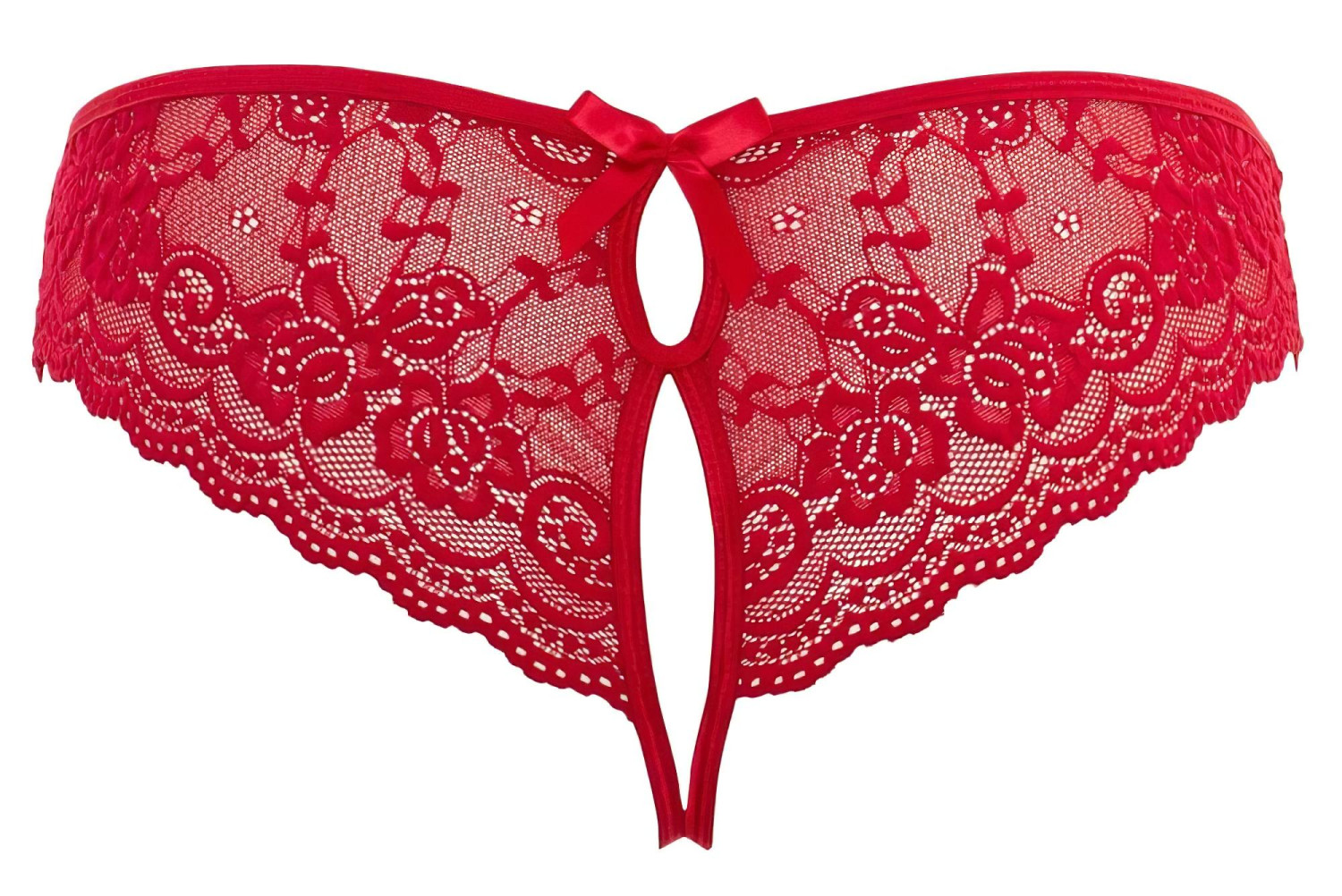 Vadító, piros színben pompázó, bájos masnis huncut női alsó, mely szemérmetlenül nyitott, szabadon hagyva a szeméremrészt!