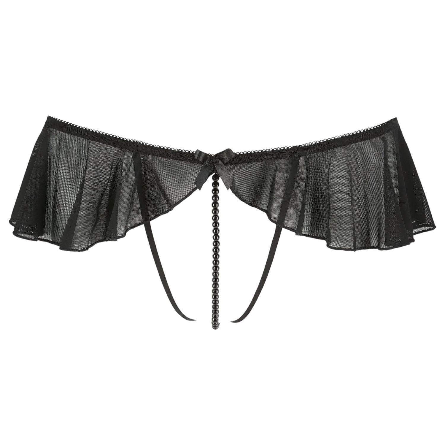 Cottelli - nyitott, gyöngyös fodros tanga (fekete)