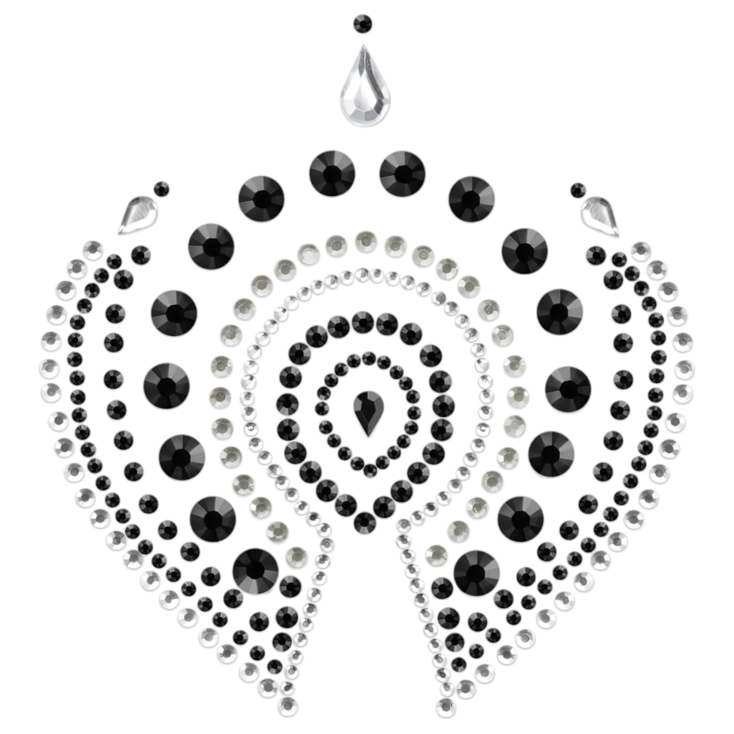 • Helyezd fel a szeméremdíszt úgy, hogy a strasszok harmonikusan keretezzék az intim területet.