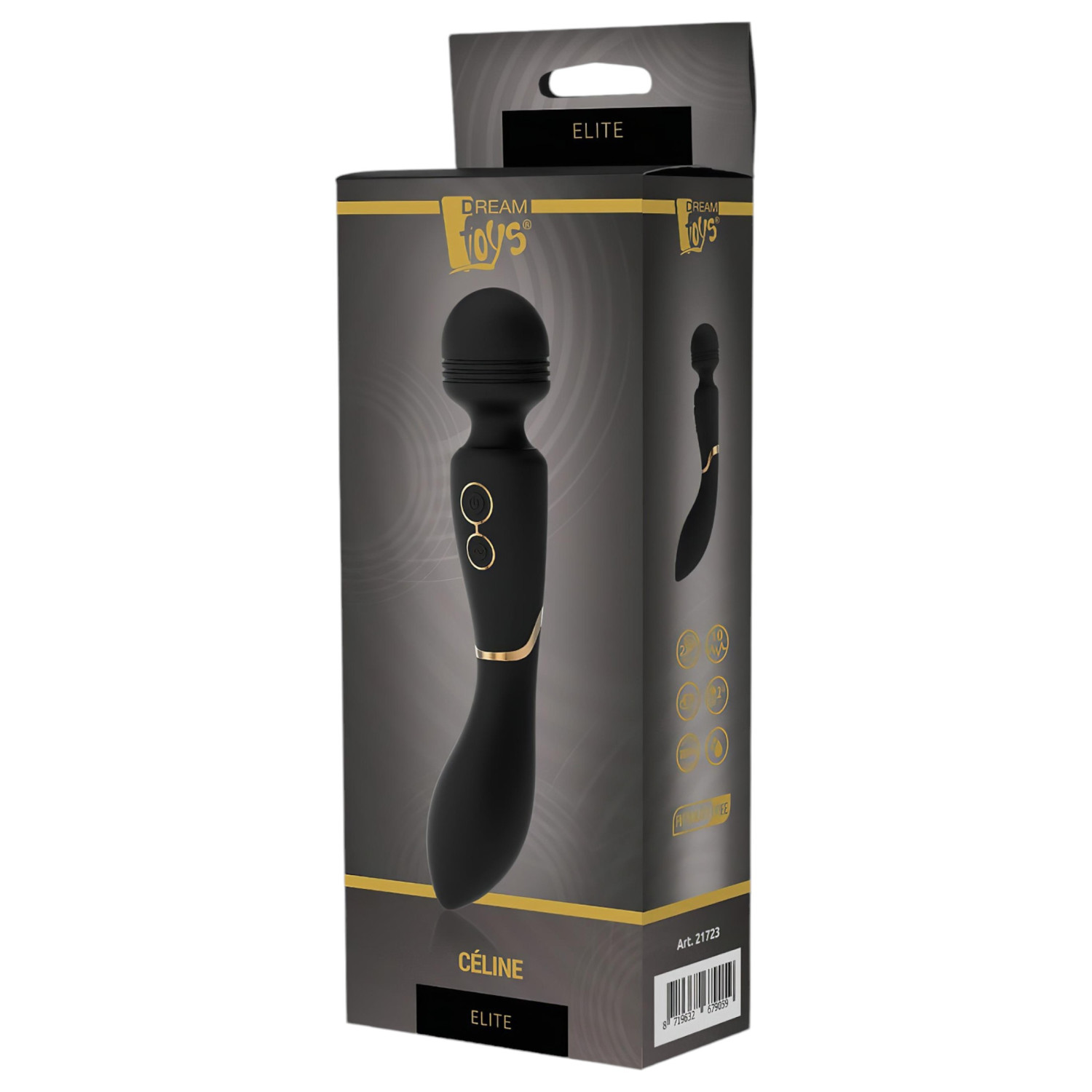 Az Elite márka új bársonyos tapintású masszírozó vibrátora elegáns arany részletekkel.