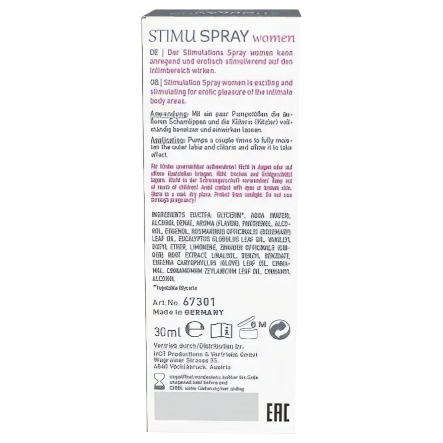 Ez a különleges intenzív élményt nyújtó stimuláló spray a klitoris és a szeméremajkak érzékenységét fokozza a bőrben élénkítő vérkeringést serkentő összetevőkkel, így szexuális élményed intenzívebb és élvezetesebb lehet.