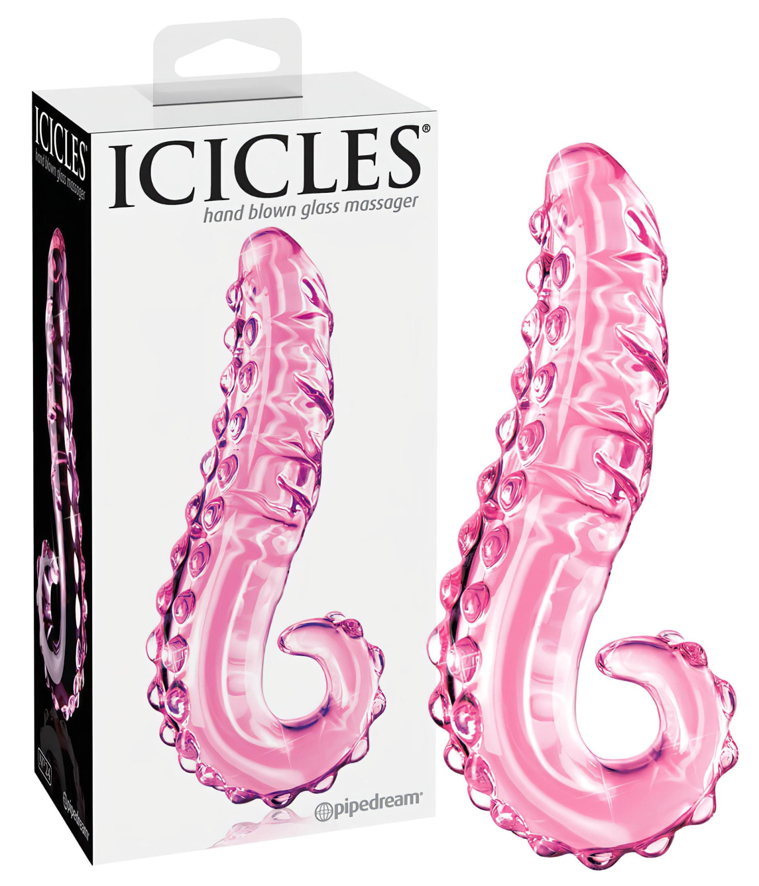 Icicles No. 24 - bordázott nyelv üveg dildó (pink)