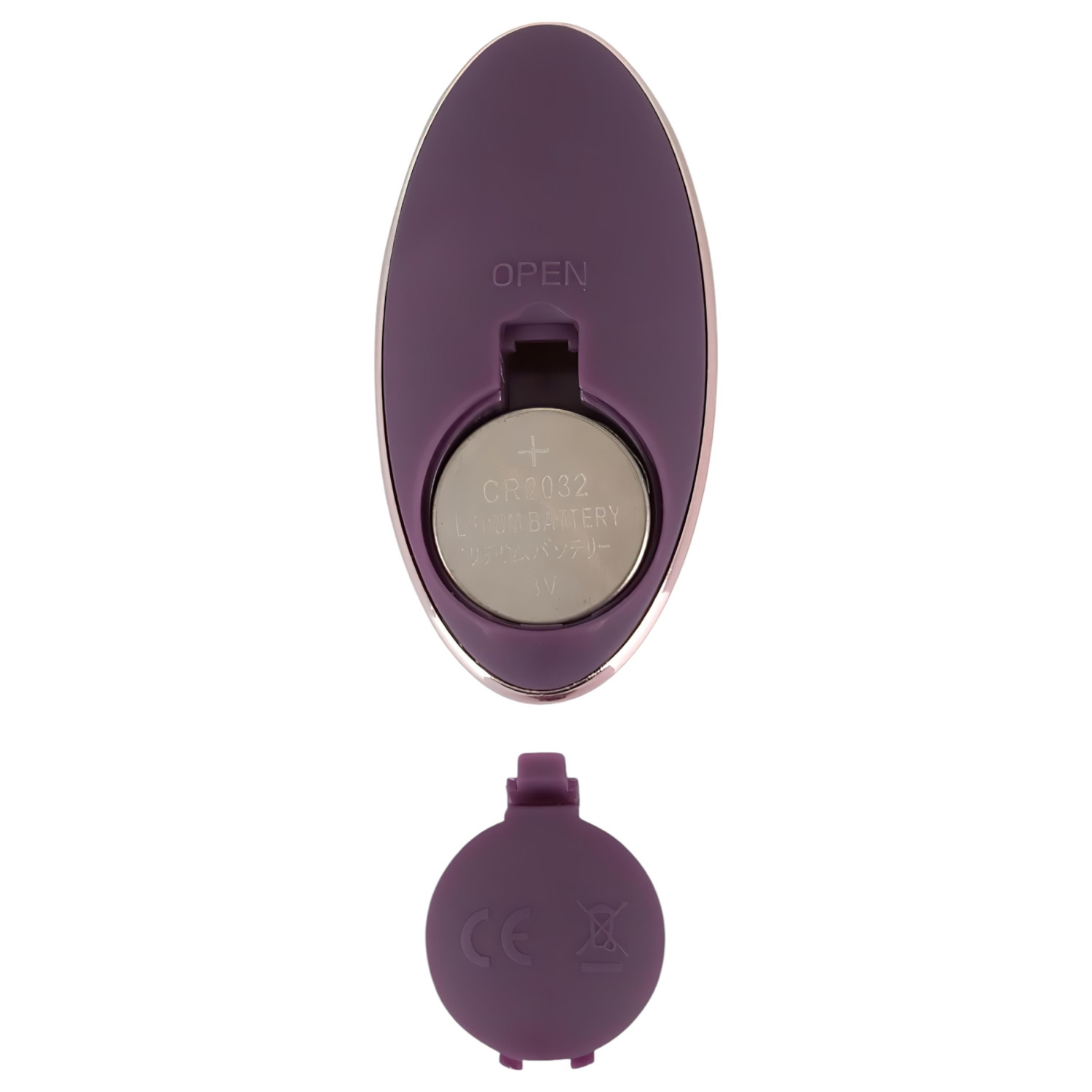 A töltő csatlakozó a tojás testén, a vezérlőgombbal átellenes oldalon található. Egy apró perforált kör – első használatkor óvatosan szúrd át a töltőfejjel. USB-kábellel tölthető.
