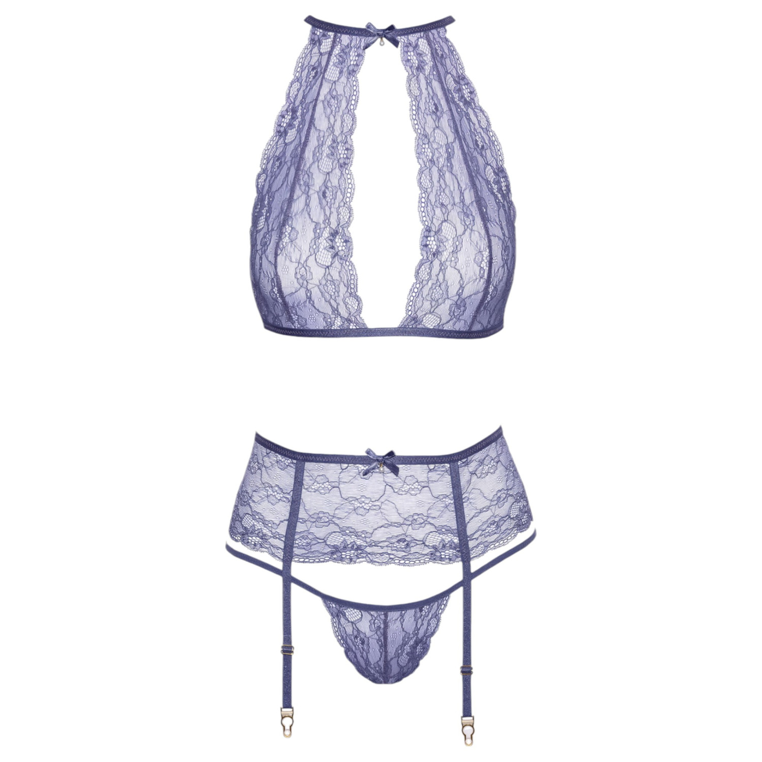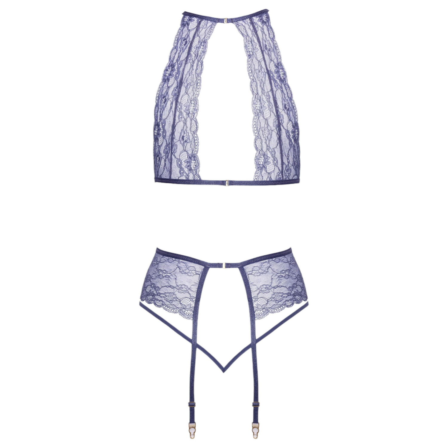 Ez a gyönyörű, áttetsző csipkéből készült szett finoman elegáns és érzéki megjelenést biztosít. A