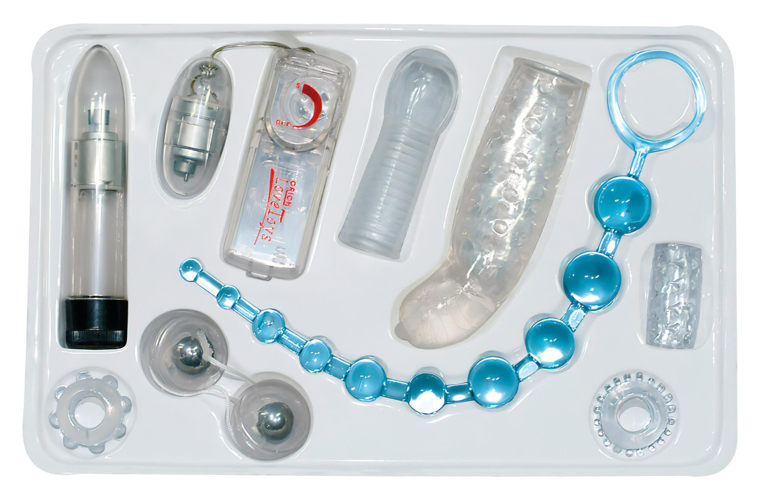 Kristálytiszta élvezetek egyetlen készletben, 9 részes, áttetsző anyagból készült szerelmi készlet, amely minden szükséges kiegészítőt tartalmaz az érzéki felfedezésekhez.