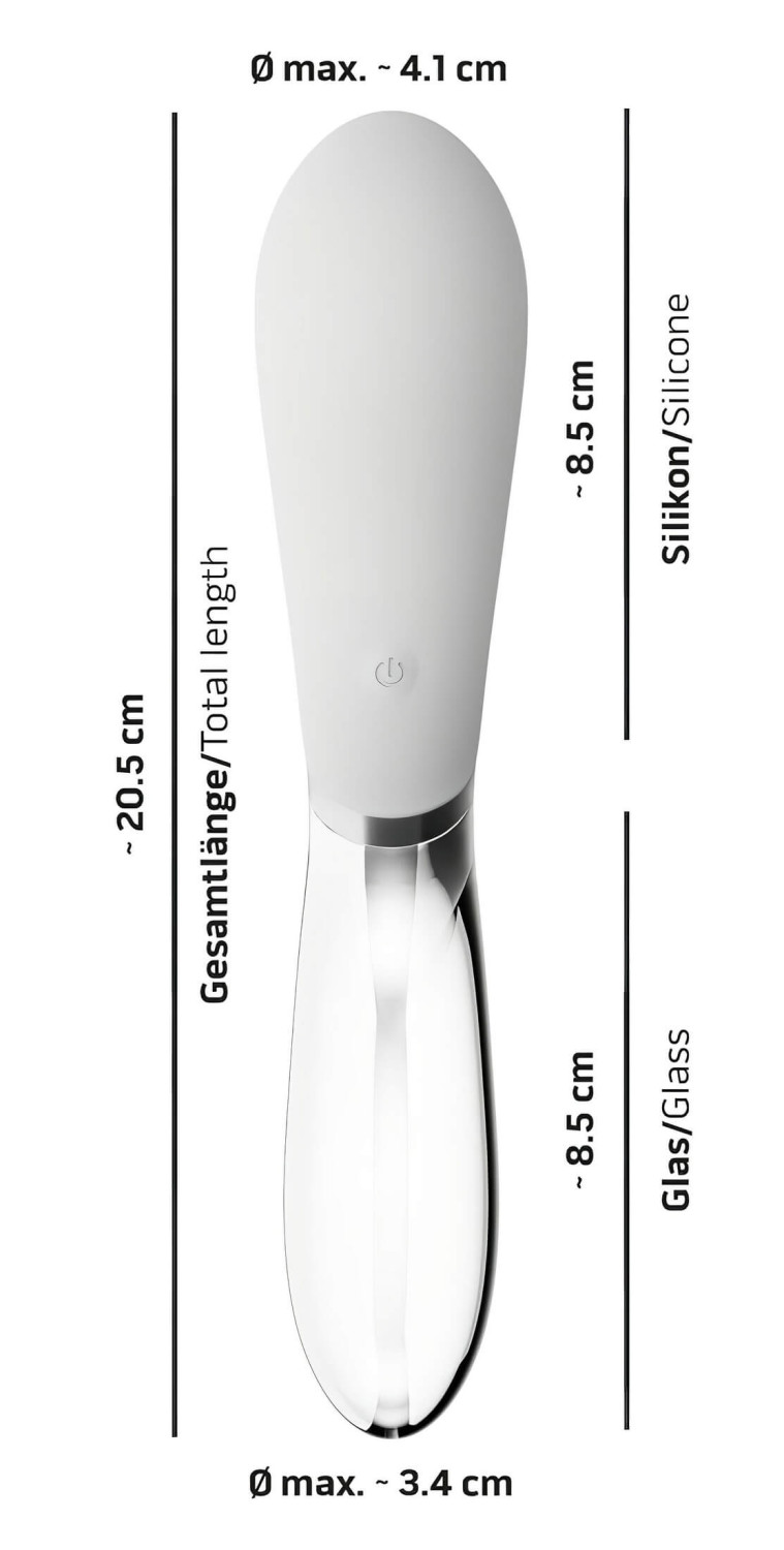 • mindkét vége használható - egyik vége bársonyos szilikonból, a másik vége pedig tömör, kiváló minőségű boroszilikát üvegből készül