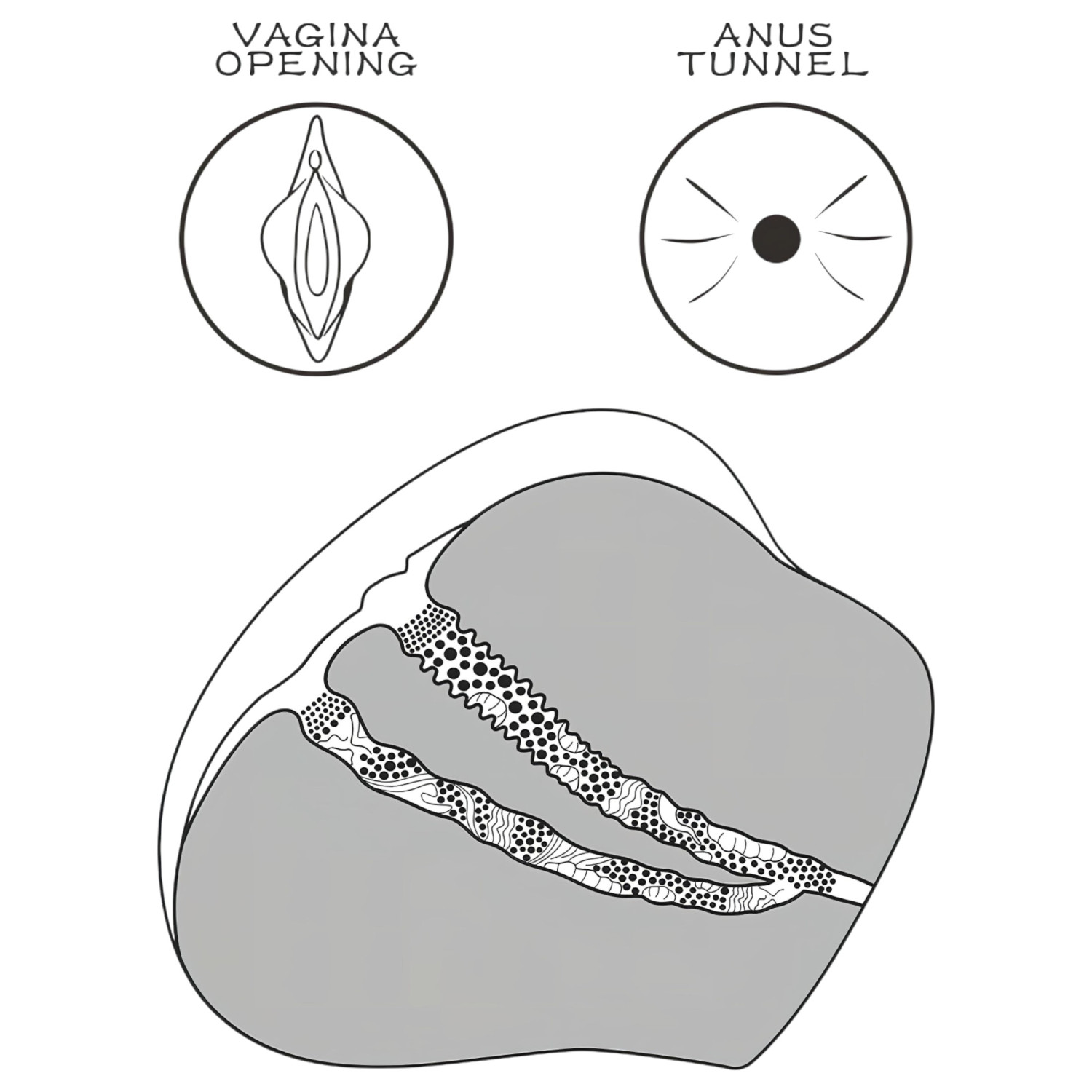 • 2 kéjnyílás - tökéletesen formált és puha, valamint extra szűk punci és popsi belül változatos stimuláló felszínnel