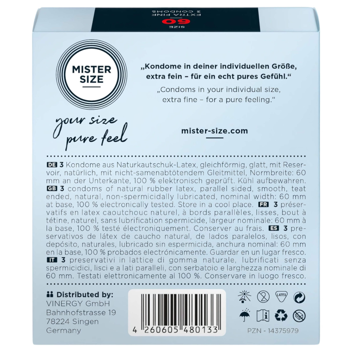 Természetes érzet és biztos illeszkedés azoknak, akik nagyobb méretet keresnek – a Mister Size 60 mm-es óvszerek pontosan rád szabva!