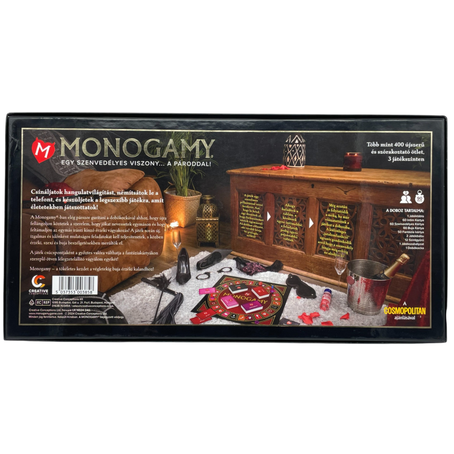 Több mint 1,5 millió eladott példány világszerte nem tévedhet – a Monogamy egy erotikában gazdag párjáték, ami újra fellobbantja a tüzet köztetek. Garantált szórakozás, meghitt pillanatok, kacér kérdések és forró feladatok várnak rátok!