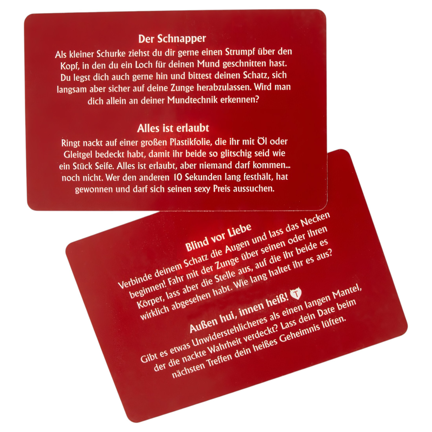 A játék során több, mint 390 szórakoztató feladat vár rátok, három különböző szinten (Intim, Szenvedély, Forró). Ahogy a játék halad előre vidám párbeszédekben és izgalmas feladatokban lesz részetek, mialatt egyre többet tudtok meg egymás testéről, elméjéről, egyre közelebb érve ahhoz a felismeréshez, hogy mi az, ami a párotokat igazán lázba hozza! A szinteken előrehaladva ahogy a hangulatotok egyre fokozódik, úgy válnak a feladatok is egyre intimebbekké, szenvedélyesebbekké, forróbbakká!