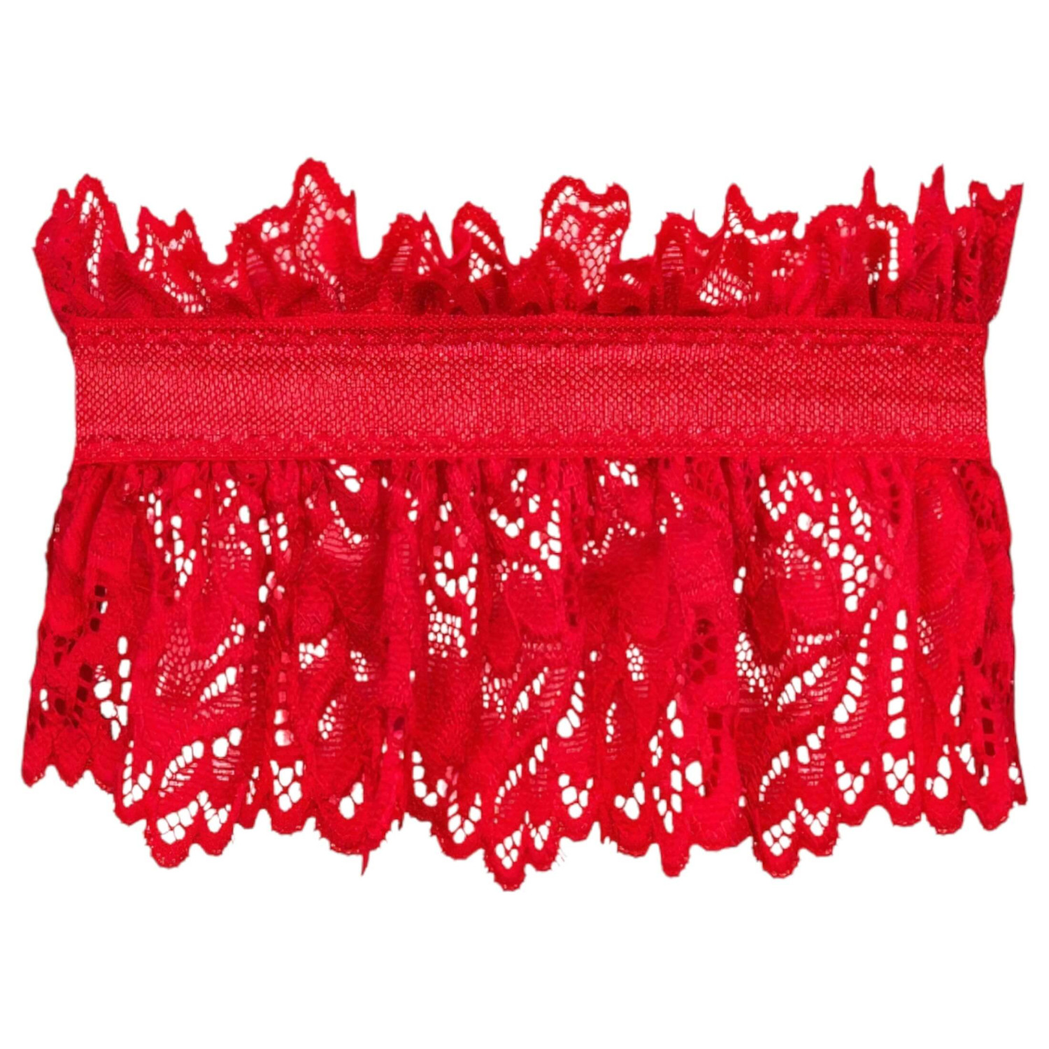 • 1 db piros színű, csipkés harisnyakötő szatén masnival
