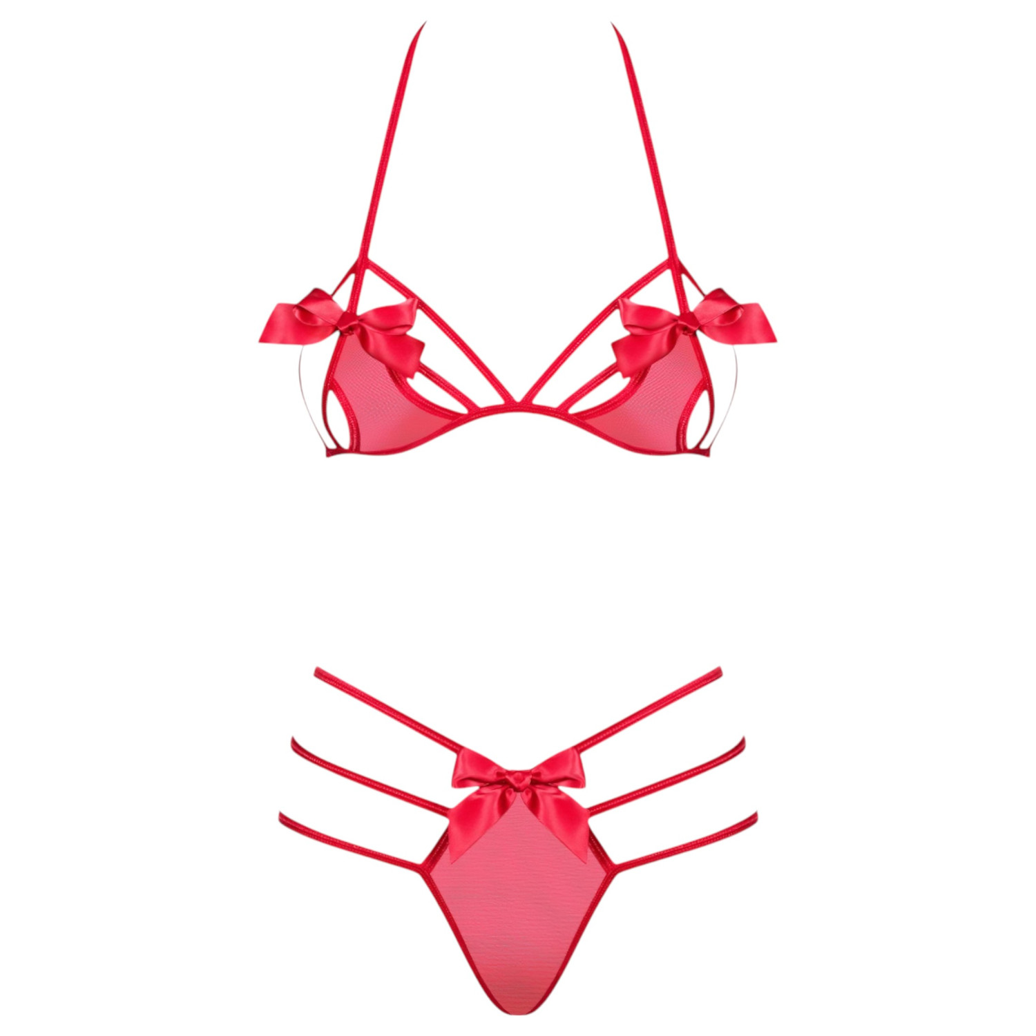 Az Obsessive Giftella szett egy érzéki és játékos fehérnemű összeállítás, amely puha, áttetsző stretch anyagból készült, stílusos pántos dizájnnal és dekoratív masnikkal.