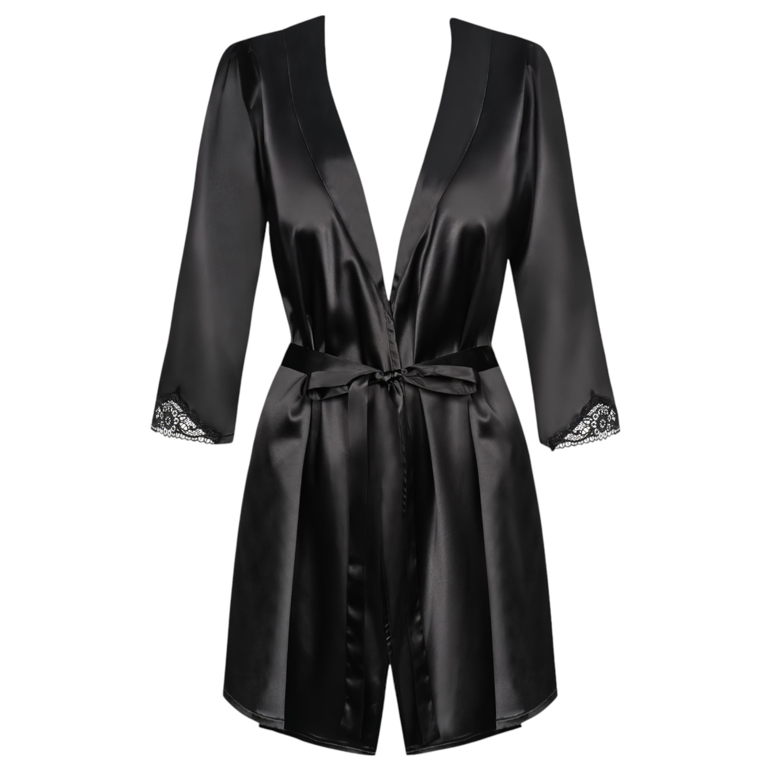 Obsessive Satinia Robe - szatén köntös szett (fekete)
