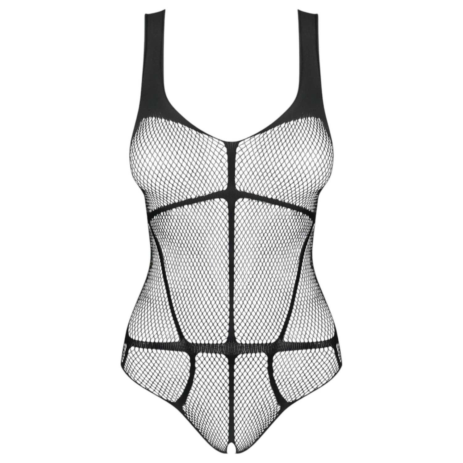Obsessive B336 - átlátszó, nyitott necc body (fekete) - S-L