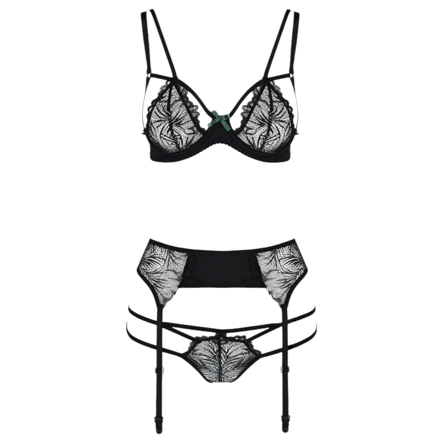 Szexi fehérnemű szett, áttetsző, levélmintás csipke anyagból.