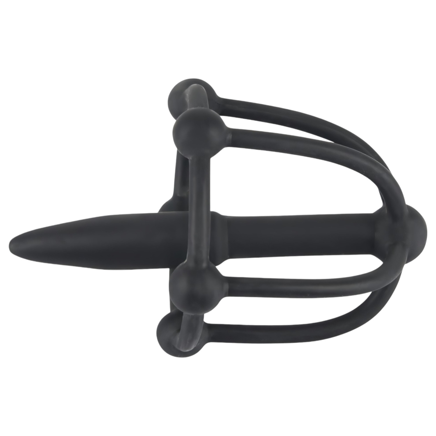 Penisplug - szilikon makk ketrec dilátorral (fekete)