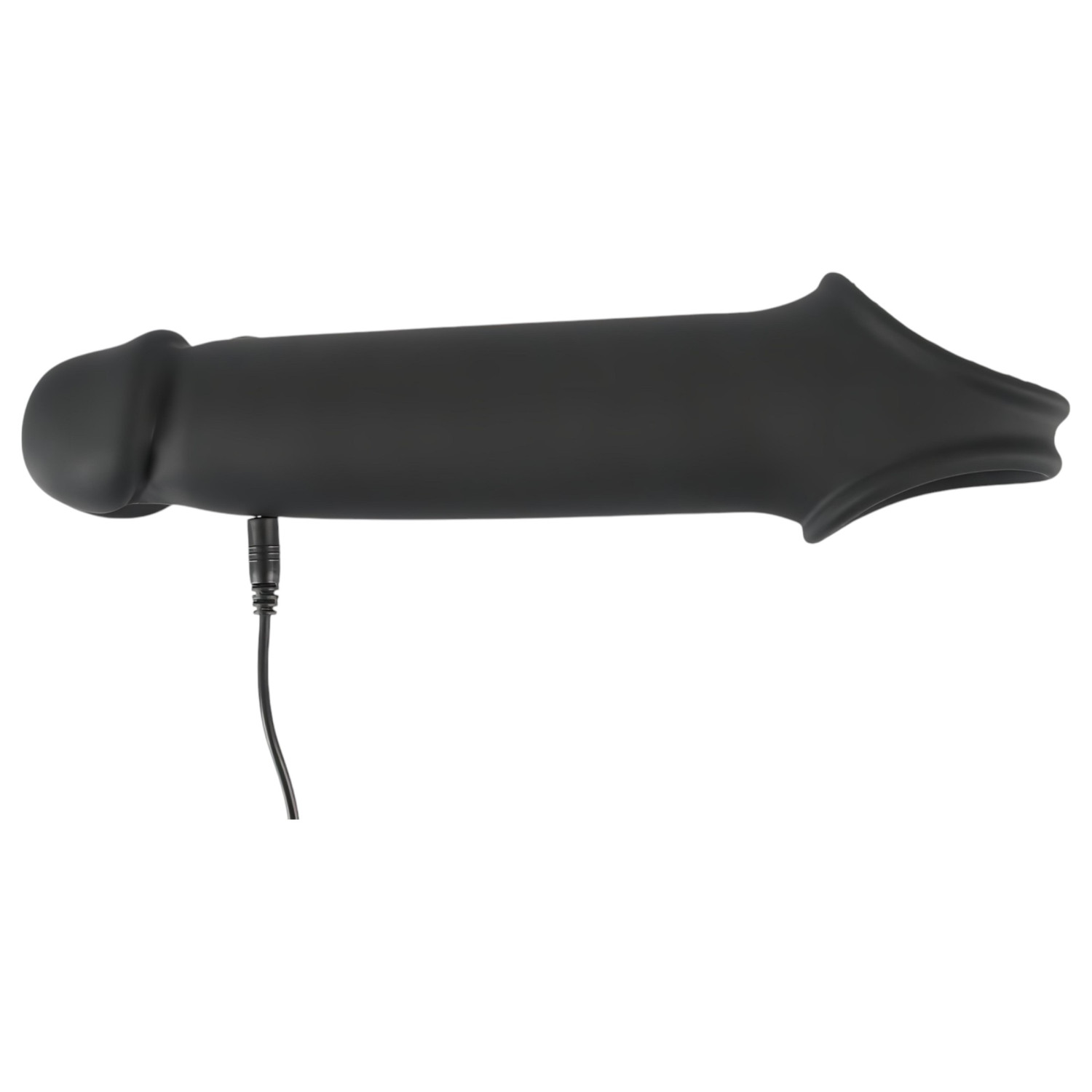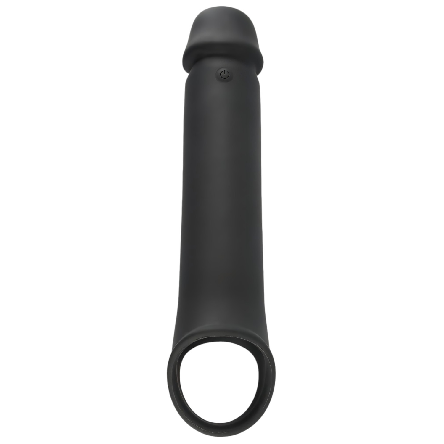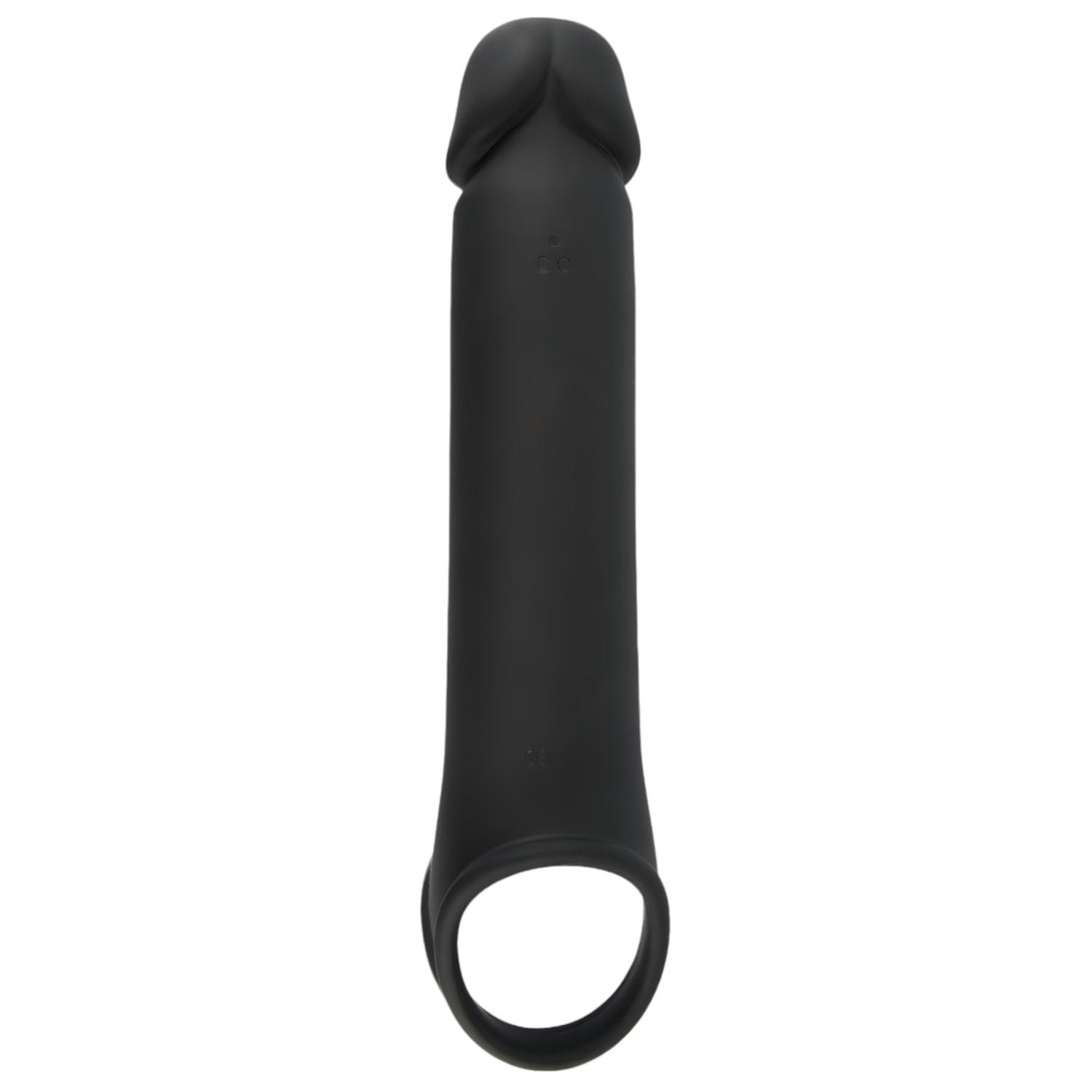 Bizsergető rezgéssel felszerelt, bőrbarát, vastagító és erősen hosszabbító hatású péniszköpeny, biztonságos, heregyűrűs kialakítással.