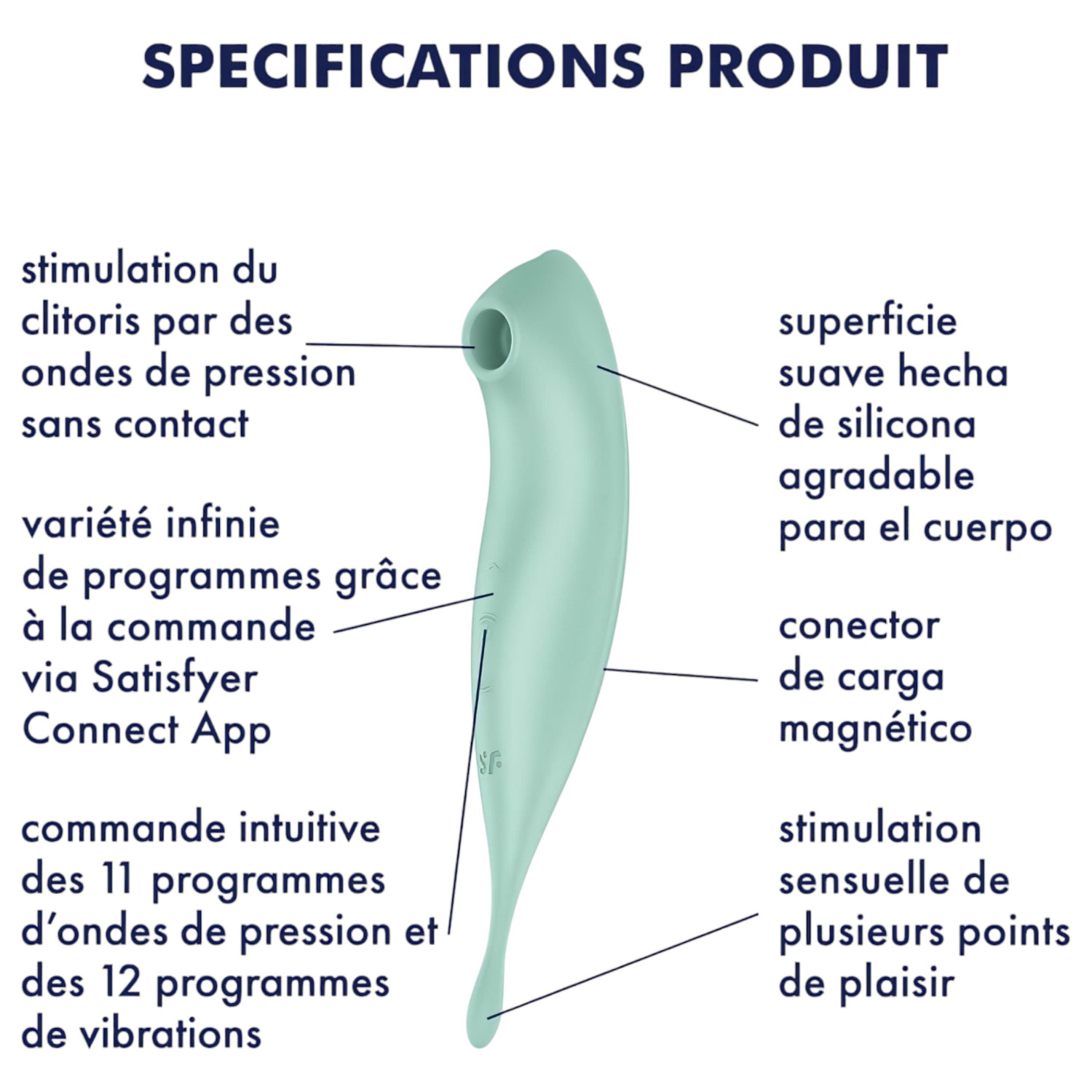A Satisfyer Twirling Pro egy innovatív, kétfunkciós vibrátor, amely a léghullámos csiklóizgató és a csiklóvibrátor kombinációjával új dimenzióba emeli a gyönyört.