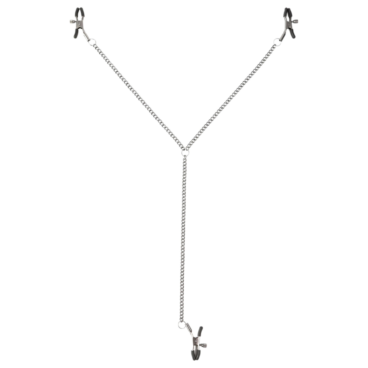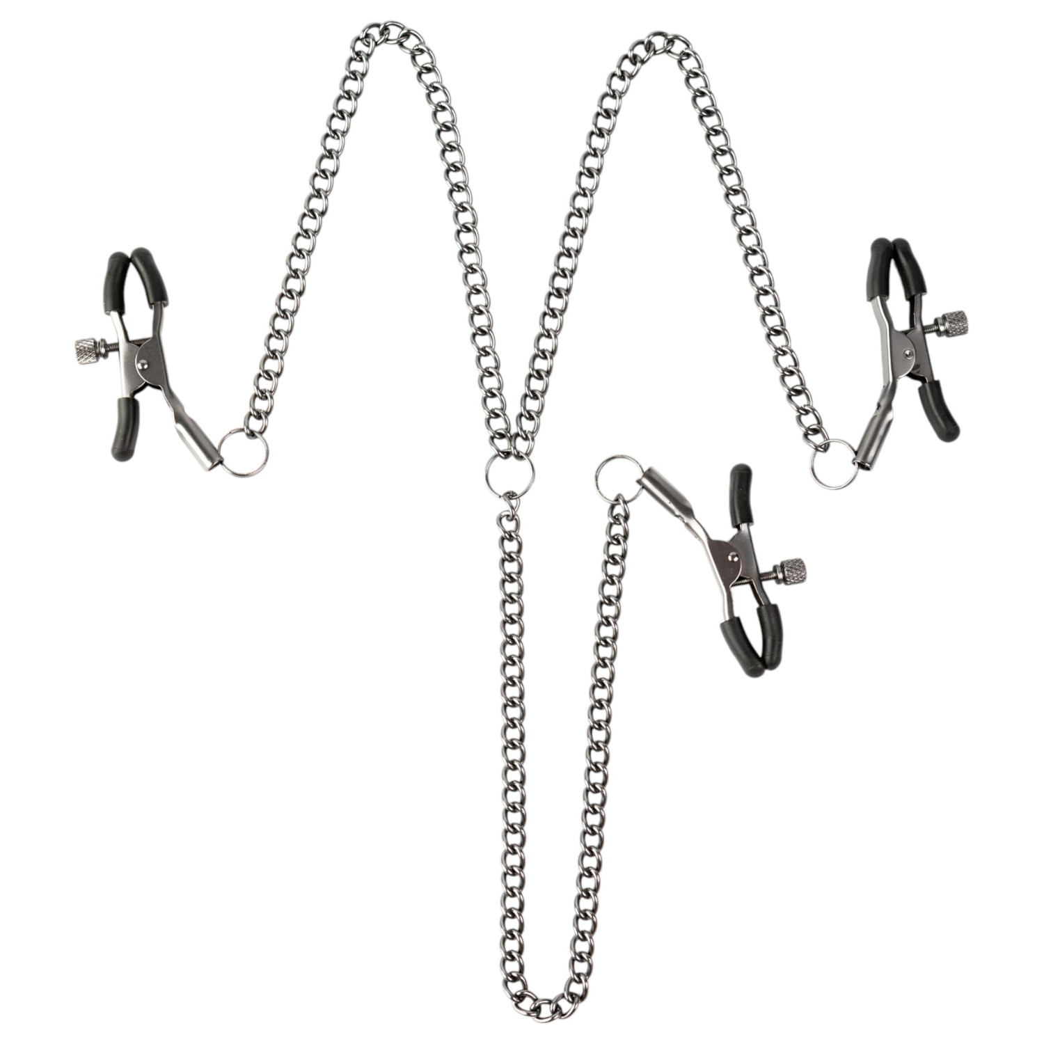 1. Óvatosan helyezd a szilikon bevonatú csipeszeket a mellbimbókra és a csiklóra.