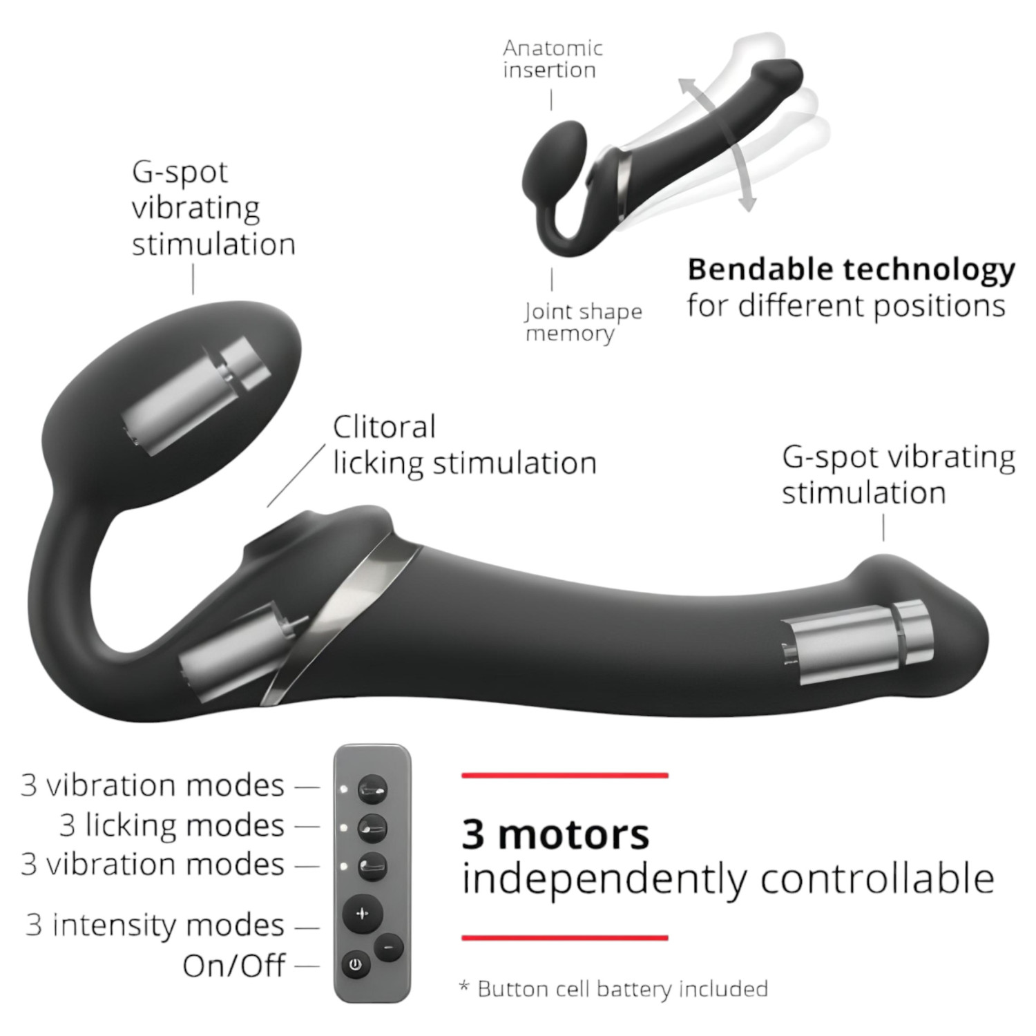 • Motorok: Három erős motor (mindkét szárban és a csiklóizgatóban)
