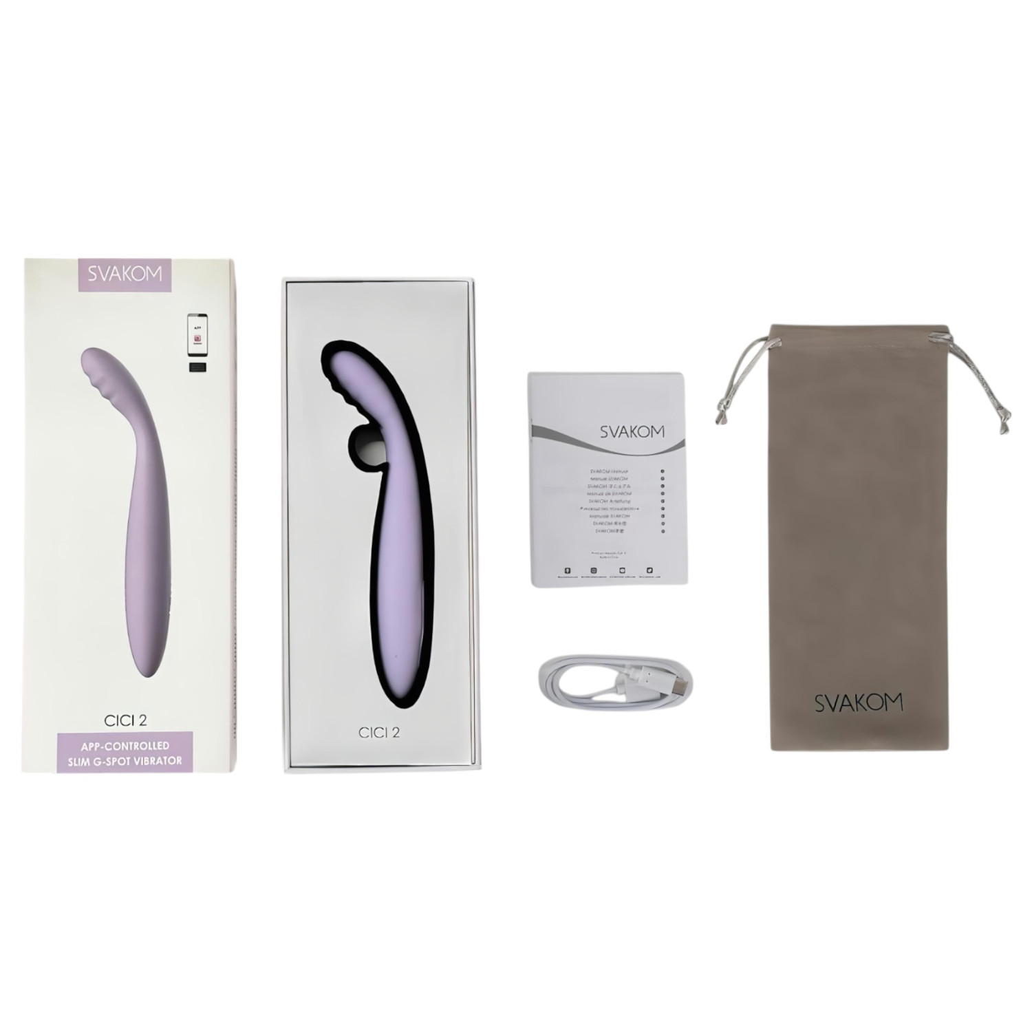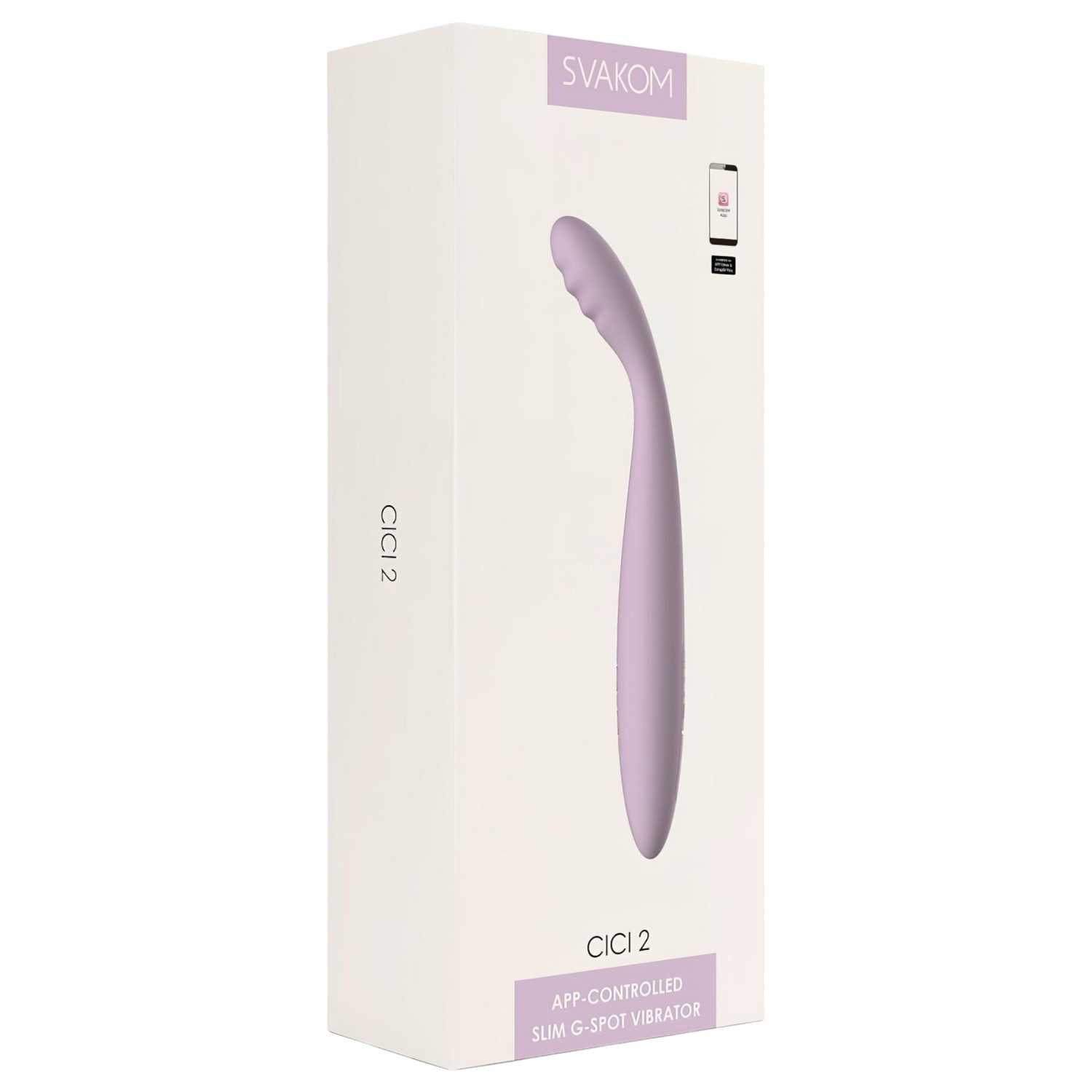 A Cici 2 G-pont vibrátor a SVAKOM-tól egy karcsú, könnyen kezelhető eszköz, amely rugalmas, bordázott fejével precíz stimulációt nyújt a G-pont, a csikló és más erogén zónák számára.