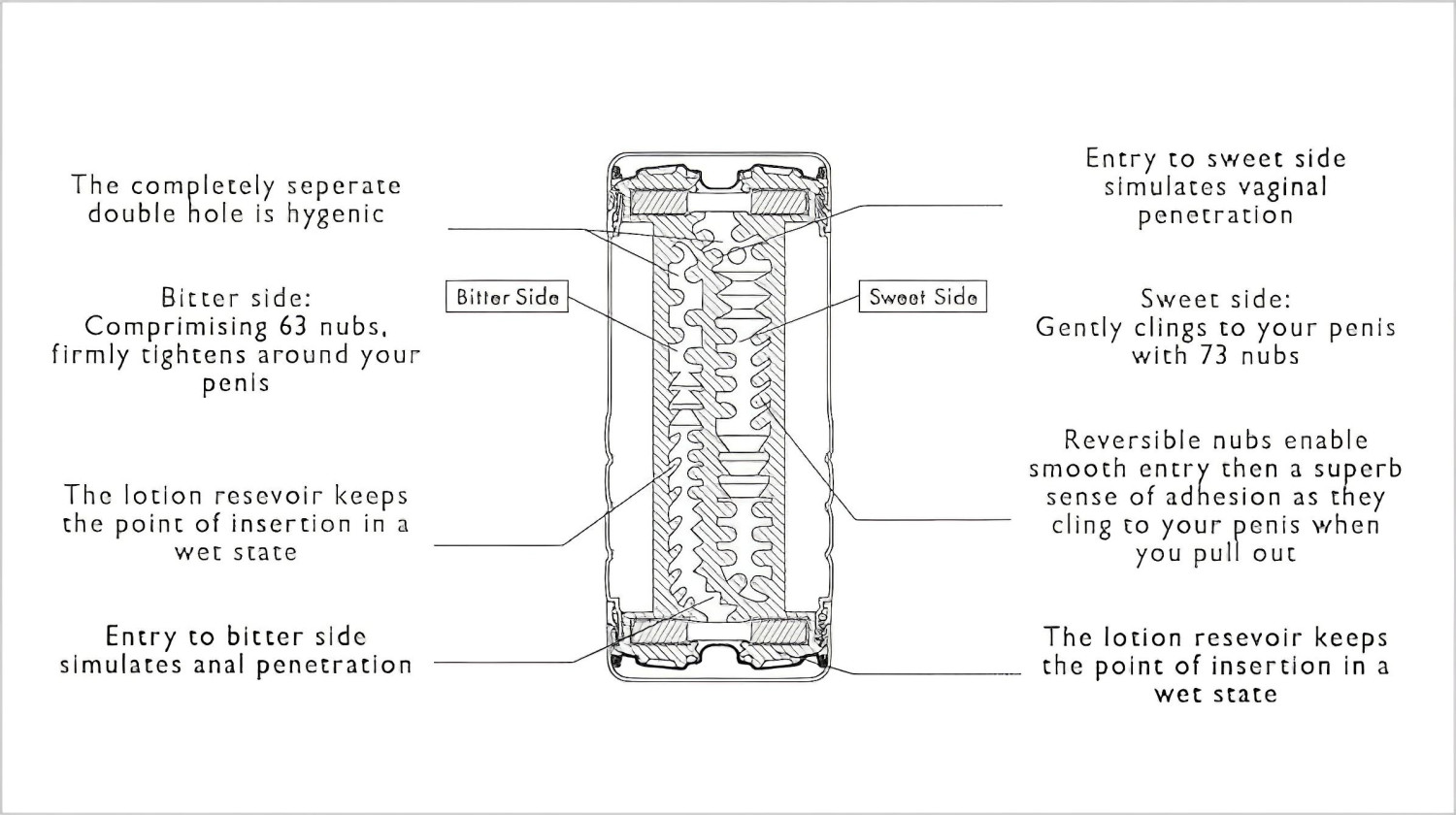 • Kettős stimuláció: Két különböző kéjcsatorna a változatos élvezetekért: egy lazább, vaginális, és egy feszesebb anális nyílás.
